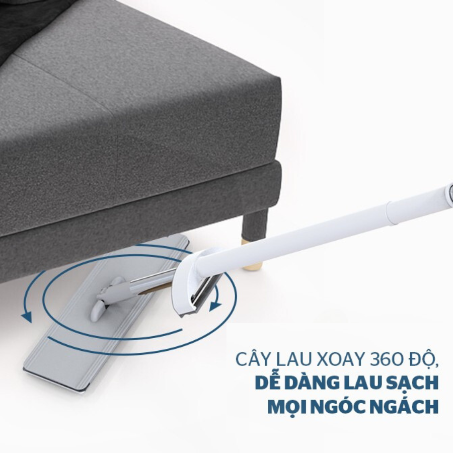 Thiết kế đầu cây lau thông minh có thể xoay góc 360 độ, nhờ vậy bạn có thể đưa đầu lau xoay dễ dàng theo góc tường, lau sâu vào trong gầm bàn, ghế, giường, tủ…mà không cần phải tốn sức.