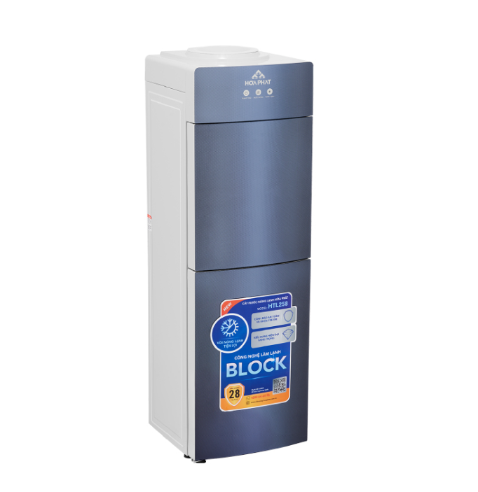 - Bảo hành vượt trội lên tới 28 tháng CÂY NƯỚC NÓNG LẠNH ÚP BÌNH HÒA PHÁT HTL258 Là cây nước nóng lạnh Hòa Phát thế hệ mới sử dụng công nghệ BLOCK làm lạnh nước nhanh và sâu tới 5 độ C, công suất làm nóng cao vượt trội cho nước nóng tới 95 độ chỉ sau 2 phút. Sản phẩm được thiết kế tinh tế, sang trọng, vỏ nhựa ABS sơn tĩnh điện trơn láng, làm đẹp thêm không gian gia đình. NƯỚC LẠNH SÂU TỚI 5 ĐỘ C VỚI CÔNG NGHỆ BLOCK ƯU VIỆT Hệ thống lạnh dùng công nghệ Block hiệu suất cao BLOCK R134a giúp máy làm lạnh nước vượt trội, nước lạnh nhanh hơn chỉ trong 30 phút và lạnh sâu tới 5 độ C, đồng thời tiết kiệm điện năng và vận hành bền bỉ hơn. Cùng dung tích bình lạnh lên tới 3,3 lít, cây nước nóng lạnh Hòa Phát đảm bảo khả năng cung cấp nước lạnh liên tục đáp ứng mọi nhu cầu, phù hợp với mọi không gian như gia đình, văn phòng, trường học, công xưởng, bệnh viện, nơi công cộng,... LÀM NƯỚC NÓNG NHANH CHỈ SAU 2 PHÚT VỚI CÔNG SUẤT CỰC KHỎE Cây nước nóng lạnh Hòa Phát thế hệ mới đều có mức công suất bình nóng 580W giúp làm nước nóng nhanh tức thì, thời gian làm nóng dưới 2 phút. Sau mỗi lần tắt công tắc làm nóng, lớp bảo ôn giữ nhiệt lên tới 2,5 giờ mới cần đun lại. Với mức công suất như vậy, cây nước sẽ luôn cung cấp nước nóng nhanh chóng mà vẫn đảm bảo tiết kiệm điện. TÍCH HỢP TÍNH NĂNG AN TOÀN Cây nước nóng lạnh của ĐMGD Hòa Phát được trang bị đầy đủ tính năng an toàn như: Cảnh báo hết nước, bảo vệ quá nhiệt kép, khóa trẻ em đối với vòi nước nóng, an toàn tuyệt đối trong quá trình sử dụng. BẢO HÀNH LÂU NHẤT THỊ TRƯỜNG TỚI 28 THÁNG Với định vị "Bền - Chuẩn Hòa Phát", các cây nước nóng lạnh trong BST Thế hệ mới đều có thời gian bảo hành vượt trội lên tới 28 tháng, khách hàng an tâm, thoải mái sử dụng lâu dài. THIẾT KẾ HIỆN ĐẠI, TINH TẾ\ Sở hữu thiết kế tối giản, hiện đại, cây nước nóng lạnh Hòa Phát HTL258 sẽ giúp không gian gia đình thêm phần tinh tế nhờ tích hợp 2 cửa đóng kín ngăn bụi bẩn vòi nước đồng thời có khoang chứa đồ rộng rãi, cất chứa được nhiều ly tách, tăng tính gọn gàng cho sản phẩm.