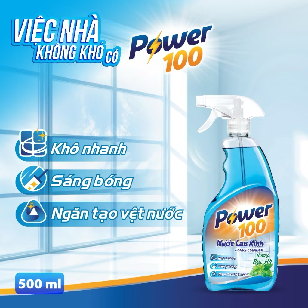 Mua tại Tiktok- Nước Lau Kính Power100 Hương Bạc Hà (580ml) với hoạt chất tẩy rửa thông minh, nước lau kính POWER100 sẵn sàng tẩy sạch mọi vết bẩn cứng đầu, giúp bề mặt kính KHÔ NHANH - SÁNG BÓNG - NGĂN TẠO VỆT nước hiệu quả.