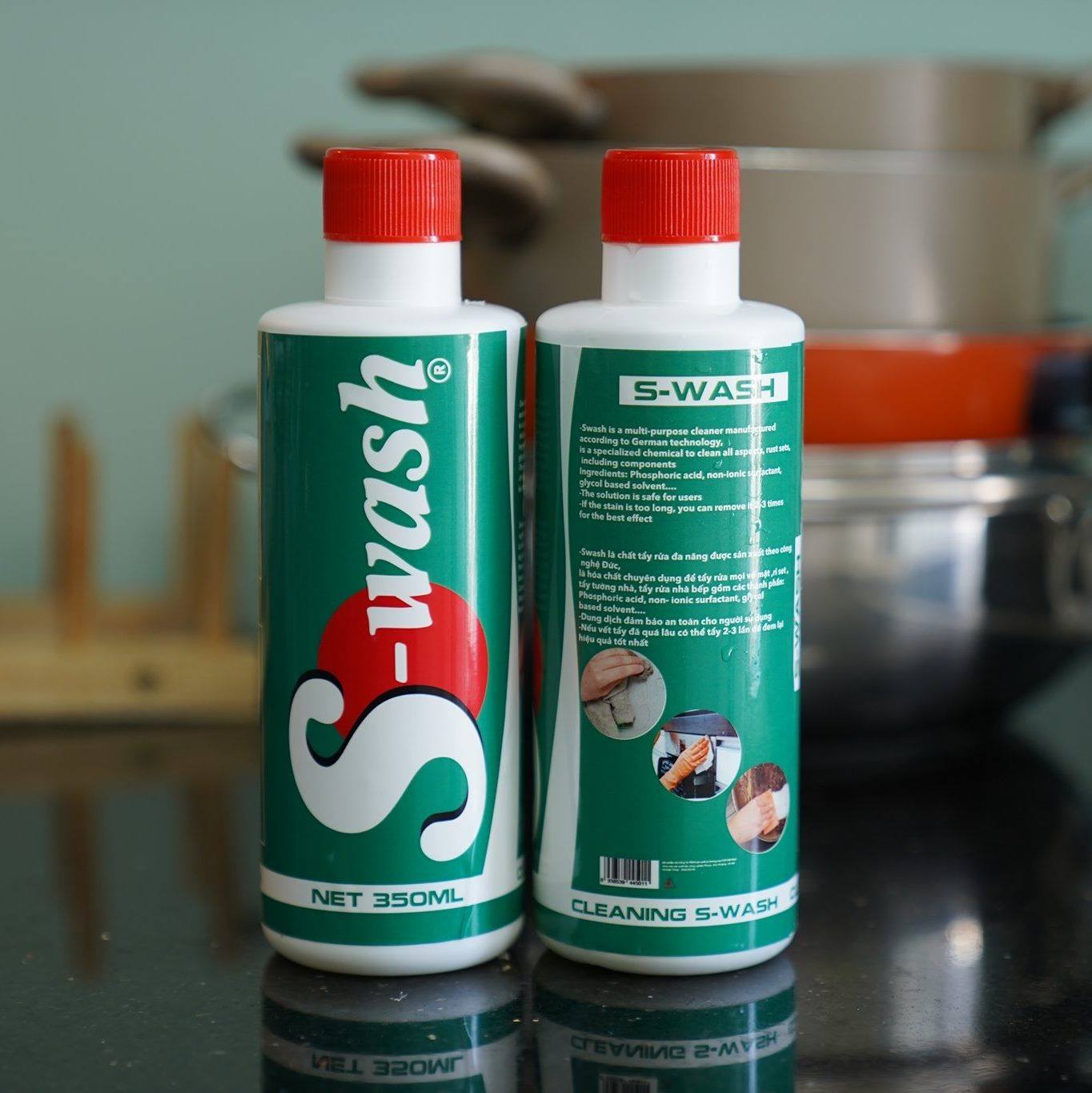 - Xịt tẩy rửa phòng bếp S-Wash có thể giúp bạn tẩy rửa và làm sạch các bề mặt trong nhà bếp một cách hiệu quả.