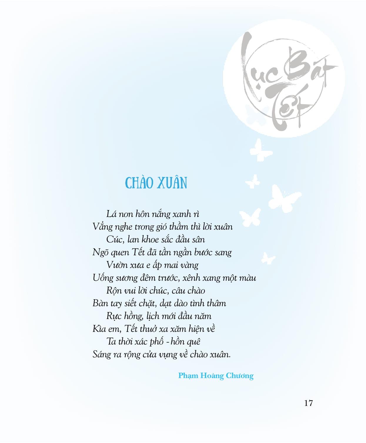 Cuộc thi thơ Lục bát Tết, lần đầu tiên do Saigon Books tổ chức, đặc biệt đáng nhớ vì diễn ra vào những ngày tháng Chạp, giáp Tết Đinh Dậu (2017). Khi những dòng người ngược xuôi, náo nhiệt trở lại quê nhà vui Tết thì Lục bát Tết cũng lần lượt đổ về hộp thư điện tử của chúng tôi. Lục bát, đương nhiên là phải có quy định niêm luật, nhưng vượt lên những niêm luật mang tính kỹ thuật, đó chính là QUY LUẬT TÌNH CẢM, là nhịp điệu thương nhớ gieo mầm, nảy nở theo mùa màng. Chọn 158 tác phẩm của 50 tác giả vào Chung khảo cuộc thi Lục bát Tết để in trong tập sách này, chúng tôi xem đây như là món quà nhỏ gửi đến những bạn đọc, bạn viết yêu thơ. Và, cao hơn là yêu quê hương mình còn lận đận một nắng hai sương, còn trĩu nặng toan lo trên những bờ vai gầy guộc. Chạm một miền Xuân là chạm vào một miền cảm xúc mênh mang của bao người.