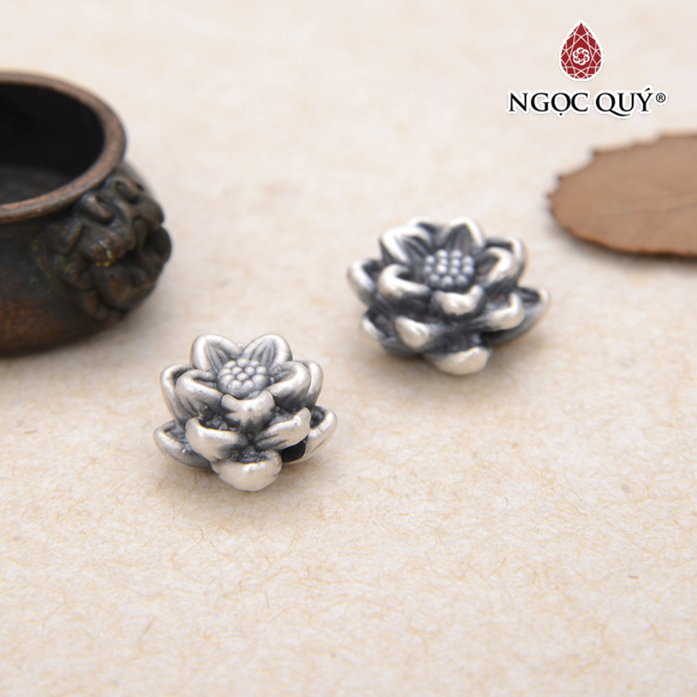 ✨Charm bạc hoa sen xỏ ngang - Ngọc Quý Gemstones
