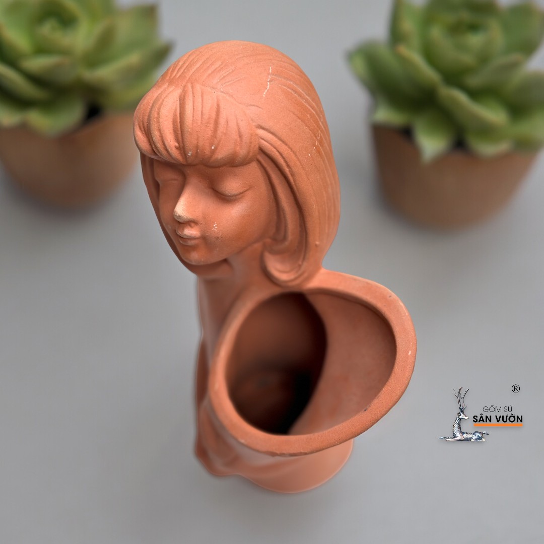 ✨Chậu Gốm Đất Nung Cô Gái Ôm Hoa