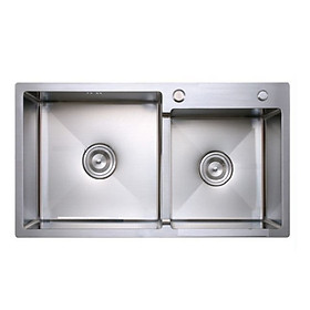 Inox 304 Kích thước chậu: 820x450mmx230mm Kích thước 2 hố: 370x380x230mm KT khoét đá: 790x425mm Kích thước 2 hố: 750mm