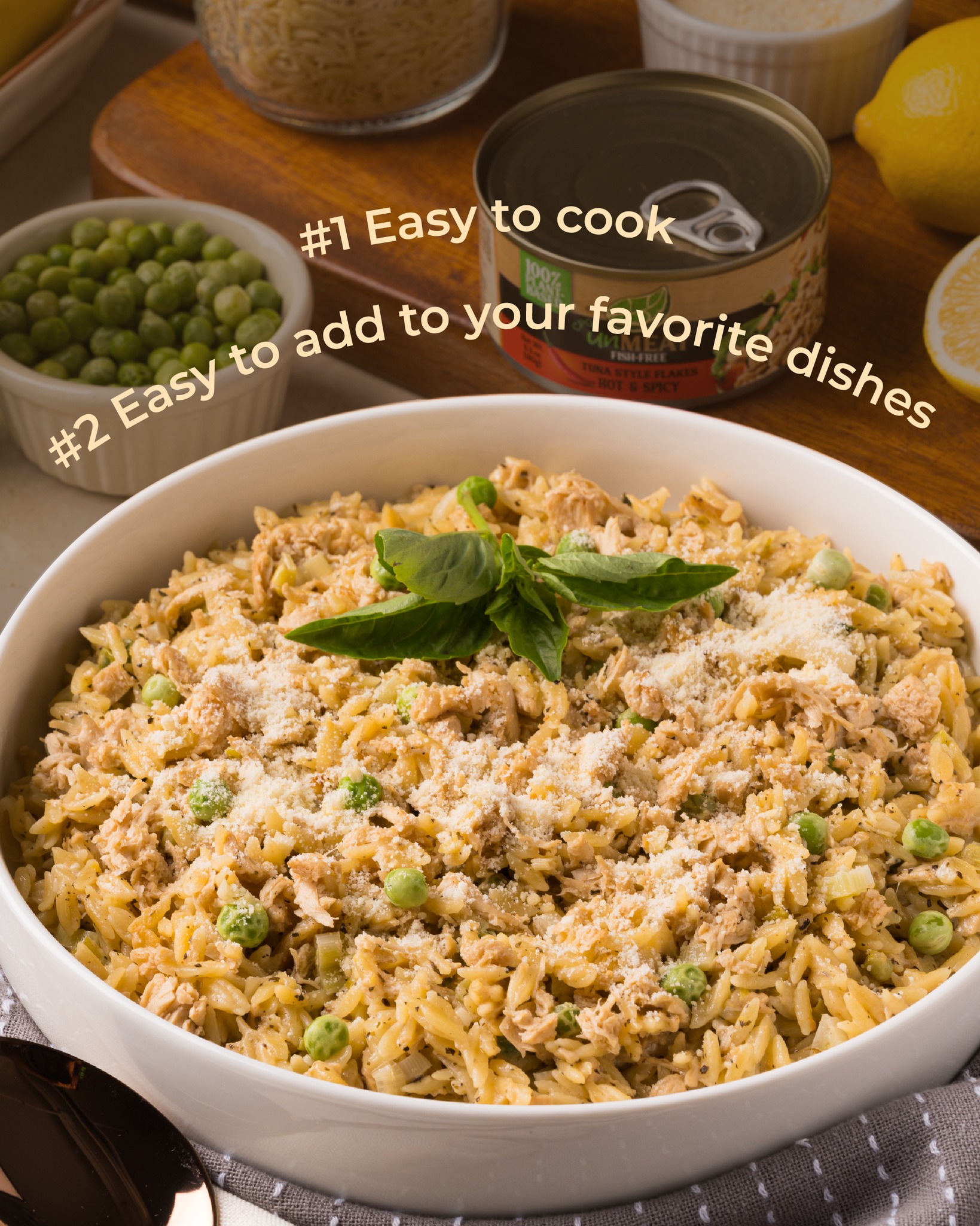 - Cá ngừ chay ngâm dầu Bổ sung ngay vào thực đơn của bạn để chế biến thêm ngàn món ăn ngon đặc sắc với Unmeat nhé! Thành Phần: Nước, lúa mì và protein đậu nành không biến đổi gen, dầu hướng dương (10%), hương liệu tự nhiên (hương cá ngừ), muối, nước dùng rau củ, gia vị (tỏi, hành), chất điều chỉnh độ acid: acid citric (acidulant), chất làm đặc (tinh bột ngô, gum đường ngô), đường và chiết xuất men. Khối lượng tịnh: 180 g/ hộp. Khối lượng ráo nước: 145 -155g/ hộp Hướng dẫn sử dụng: Dùng ăn ngay hoặc chế biến. Hướng dẫn bảo quản: Bảo quản nơi khô mát, tránh ánh nắng mặt trời
