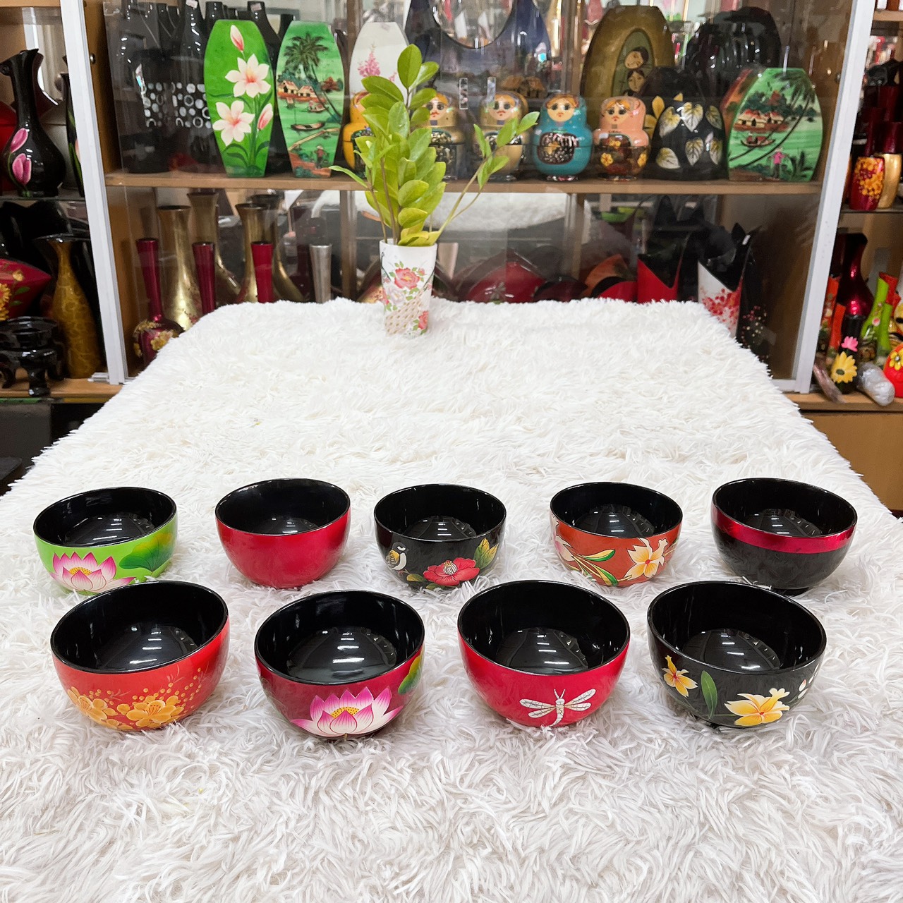 LƯU Ý: Shop giao mẫu ngẫu nhiên, khách hàng muốn lựa chọn mẫu vui lòng nhắn tin riêng cho shop nhé ạ.( Giá 1 cái chén) Kích thước: 11x7 cm Sản phẩm sơn mài được