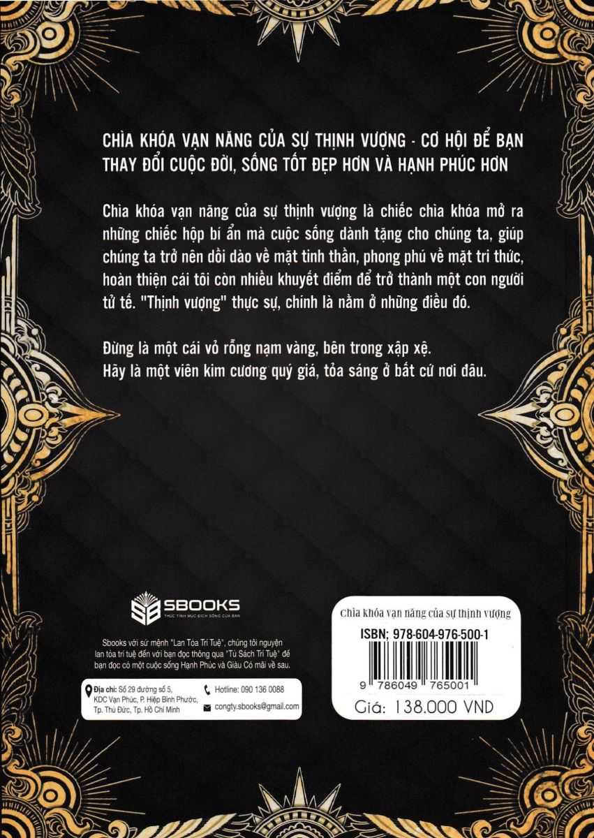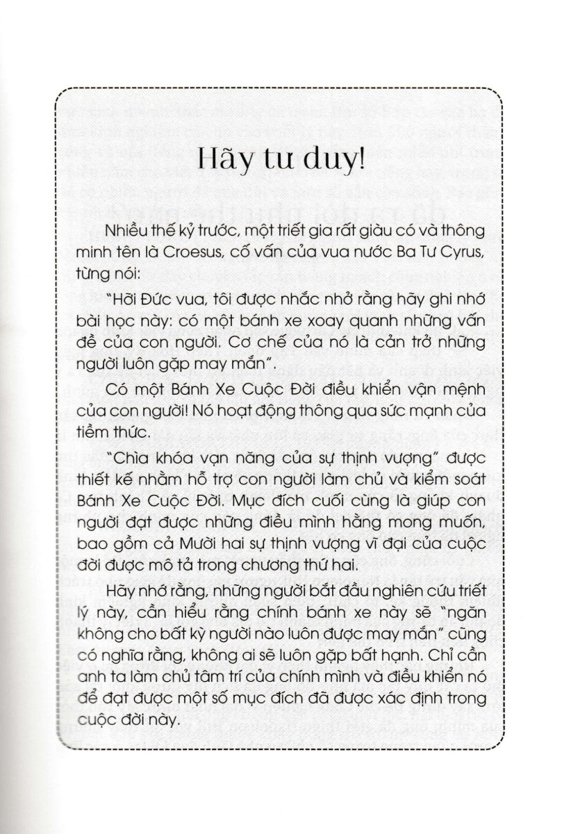 Do đó, sở hữu Chìa khóa vạn năng, bạn đọc có thể mở ra các giải pháp cho mọi vấn đề mình gặp phải, dễ dàng chuyển hóa những thất bại trong quá khứ thành những tài sản vô giá và đạt được Mười Hai Tài Sản Vĩ Đại, trong đó có cả đảm bảo tài chính.