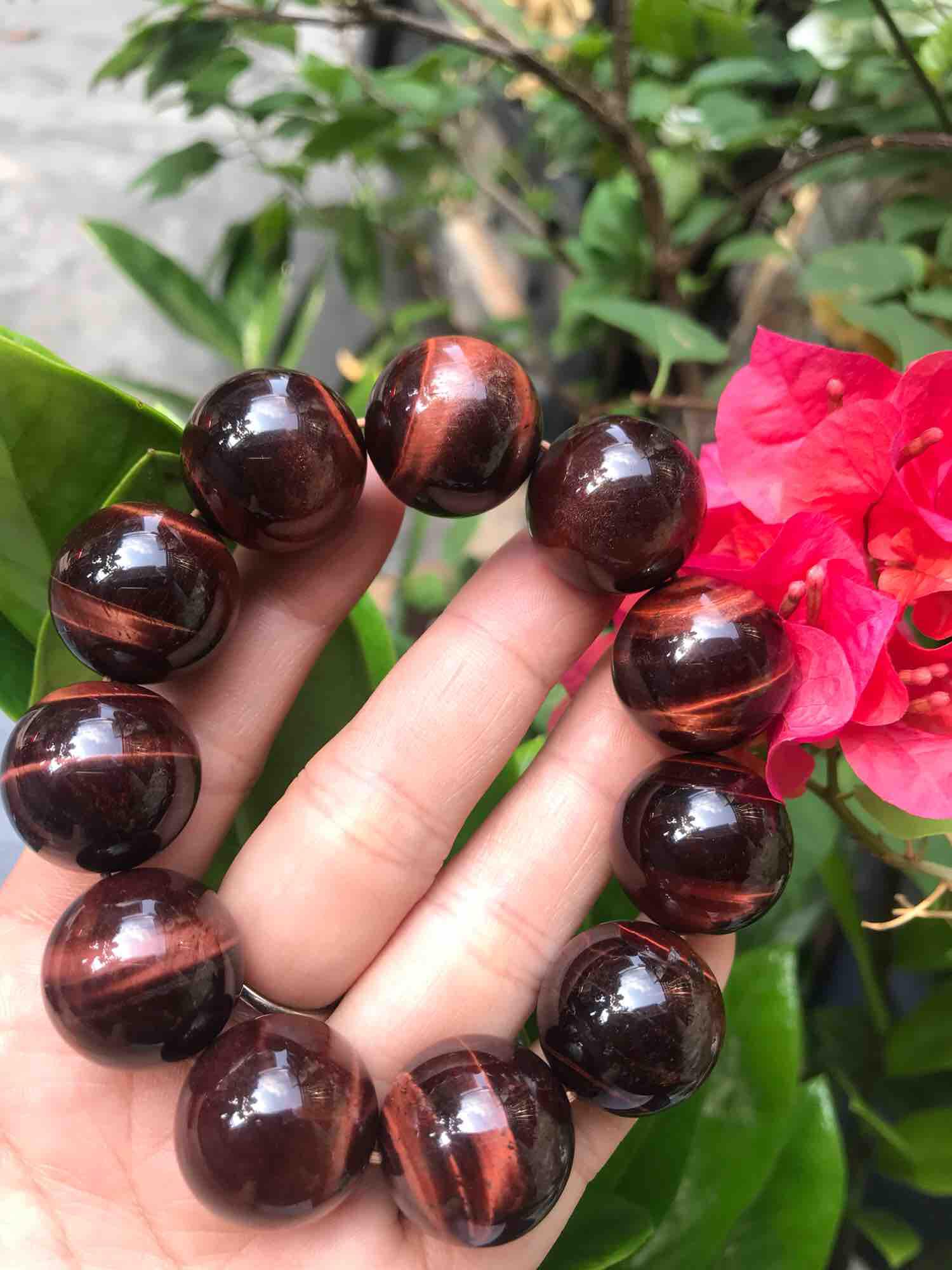 ✨CHIẾC VÒNG PHONG THUỶ ĐÁ MẮT HỔ ĐỎ NÂU TỰ NHIÊN SIZE 20MM NAM mệnh HOẢ THỔ KIM