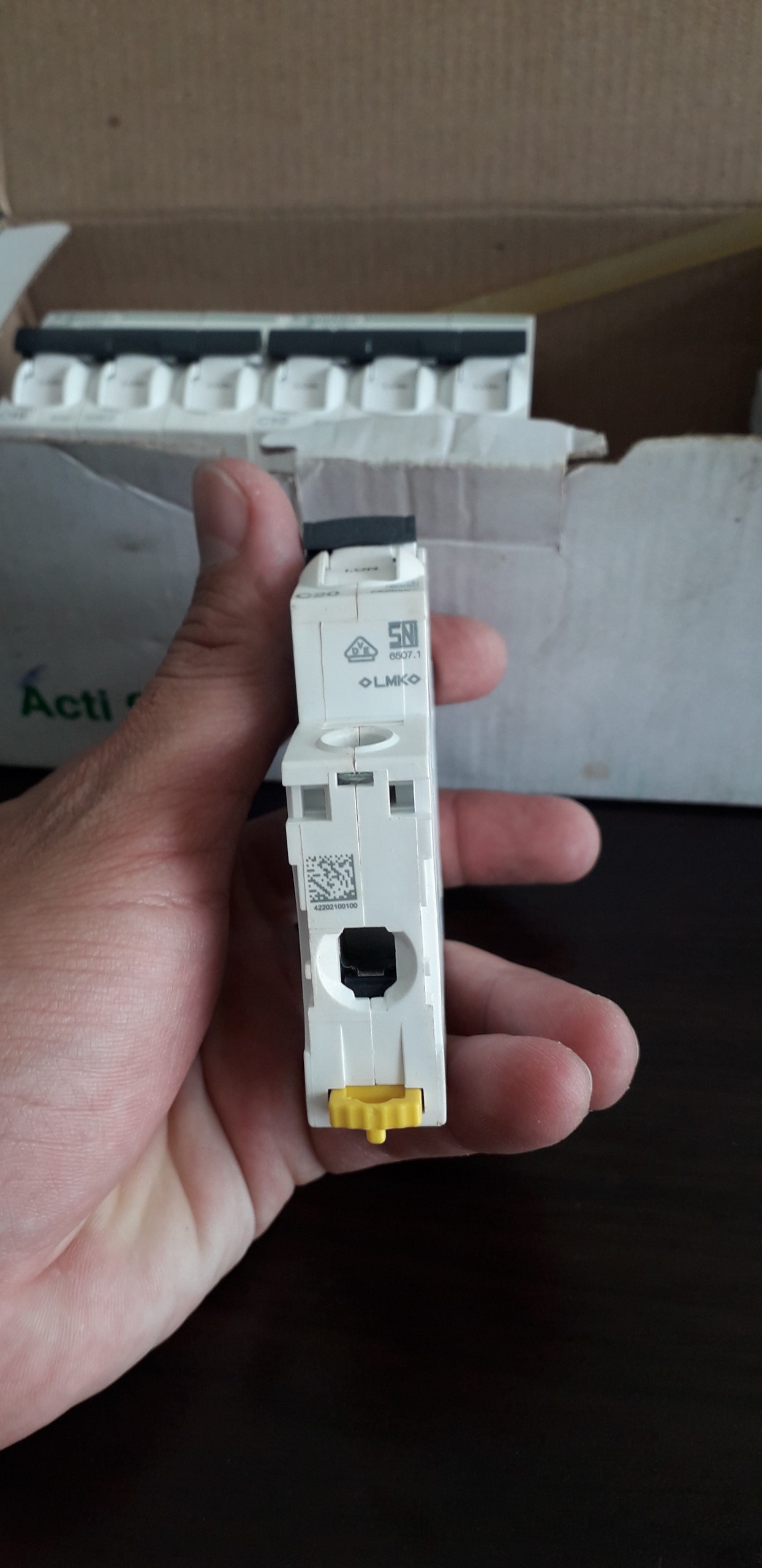 Mua tại TiktokTÊN SẢN PHẨM Cầu dao tự động A9F74120 Schneider DÒNG Acti9 iC60N KÝ HIỆU MCB SỐ CỰC 1P DÒNG ĐỊNH MỨC 20A DÒNG CẮT NGẮN MẠCH 6kA ĐIỆN ÁP 230VAC CẤP ĐỘ BẢO VỆ IP40 KÍCH THƯỚC 85x18x78.5mm NHIỆT ĐỘ HOẠT ĐỘNG -25°C-60°C NHIỆT ĐỘ BẢO QUẢN -40°C-85°C TIÊU CHUẨN IEC/EN 60947-2, 60898-1 KHỐI LƯỢNG 215g