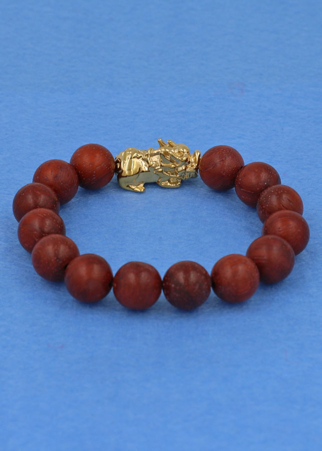 ✨Chuỗi đeo tay gỗ đỏ 12 ly - cẩn Tỳ Hưu inox vàng VGOTHV12