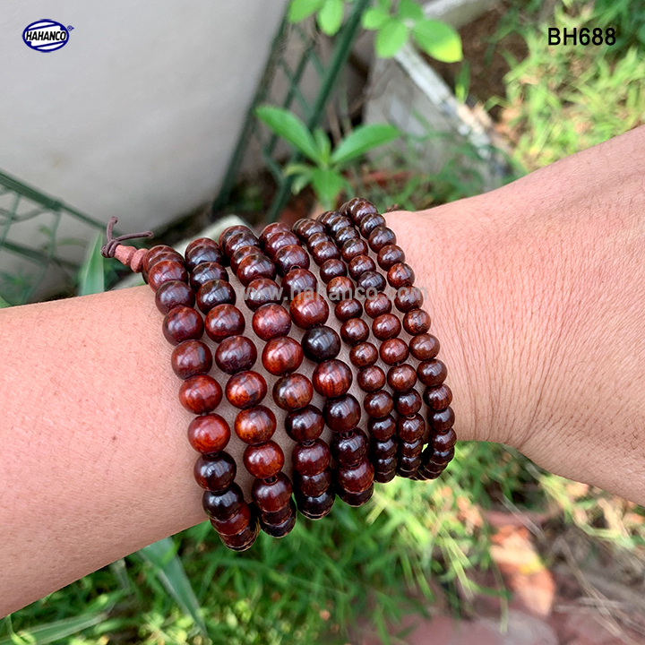 Chuỗi tràng hạt 108 hạt bằng gỗ trắc, được làm thủ công rất đẹp, có thể cuốn trên cổ tay 3 đến 5 vòng. món đồ trang sức cá tính.