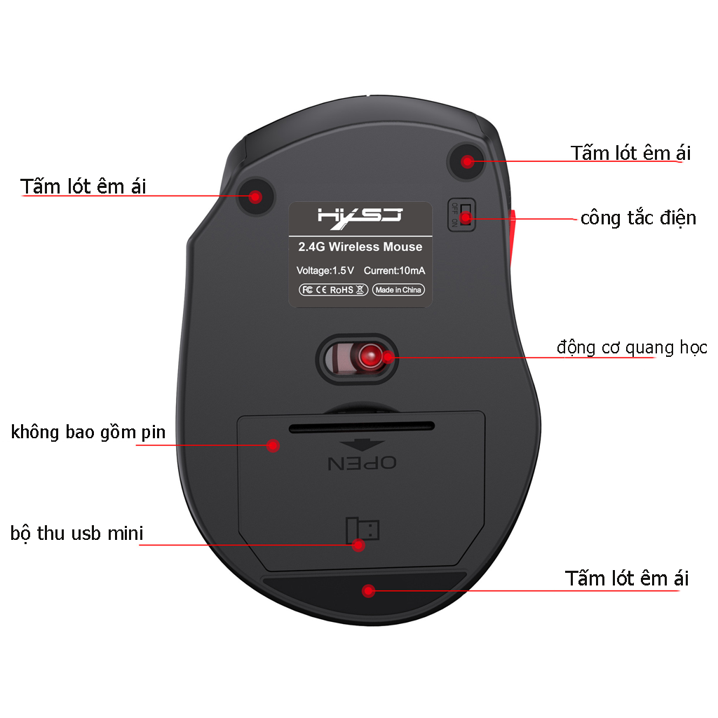 - DPI (độ nhạy): 2400dpi - Dung lượng pin: pin sạc 500mAH giúp bạn thoải mái sử dụng mà không lo hết pin. - Kết nối không dây 2.4G đáng tin cậy và chuột có