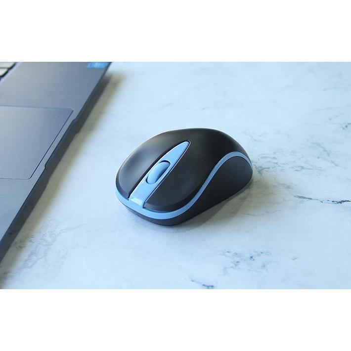 Không quá rườm rà và hầm hố, chuột không dây mang màu đen chủ đạo kết hợp với các đường viền và phần con lăn chuột được sơn màu xanh nhẹ nhàng, cực bắt mắt và thanh lịch. Sản phẩm được cấu tạo và hoàn thiện từ chất liệu nhựa ABS mang lại độ bền cứng rất cao. Chất liệu này giúp hạn chế trầy xước, nứt vỡ khi va đập đồng thời cho trọng lượng nhẹ, dễ dàng mang theo khi đi ra ngoài.