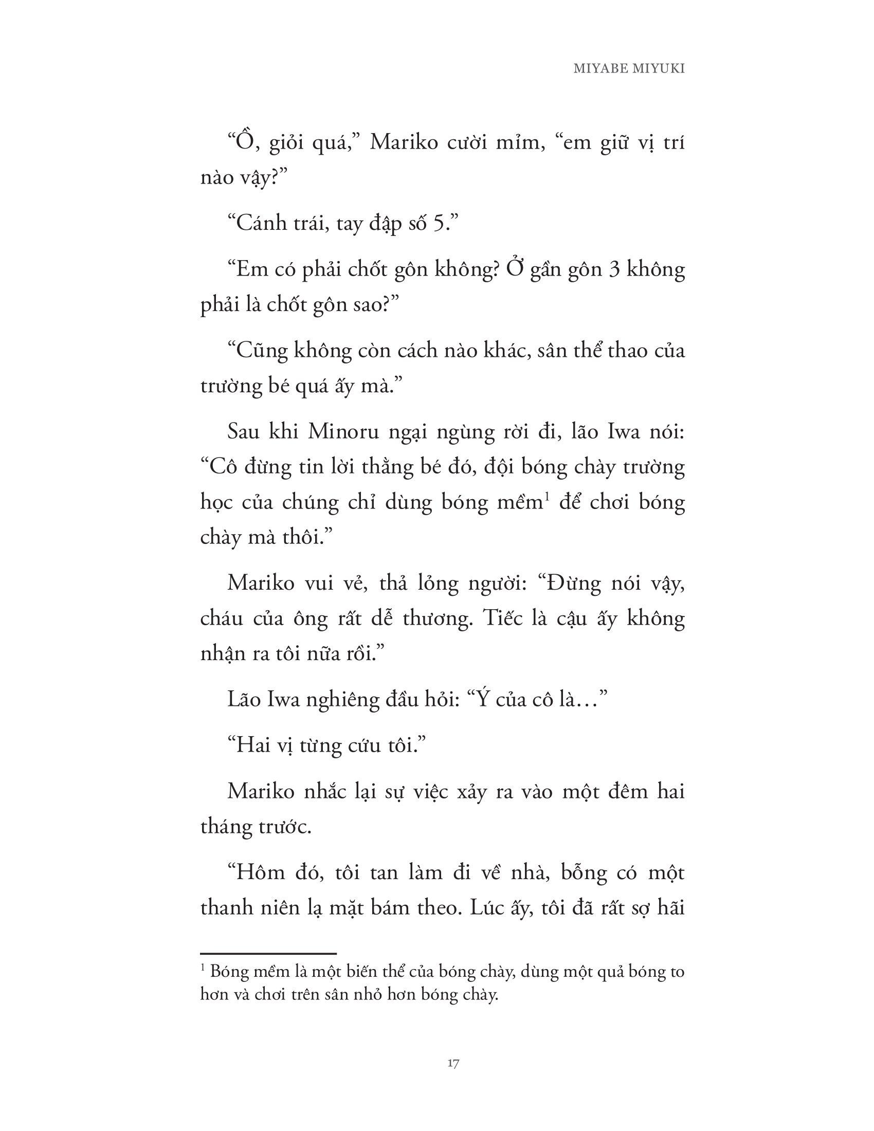 Tác giả Miyabe Miyuki sinh năm 1960 tại Tokyo, được biết đến như “Tác giả quốc dân của nền văn học Nhật Bản”. Sau khi ra mắt công chúng lần đầu vào năm 1987, bà tiếp tục viết sách và nhận được rất nhiều giải thưởng ở nhiều thể loại khác nhau như tiểu thuyết trinh thám, tiểu thuyết thời đại, tiểu thuyết giả tưởng… Bên cạnh đó, 11 năm liền bà được bầu chọn là “Tác giả nữ được yêu thích nhất” và được xem là “Kỳ tích của lịch sử văn học Nhật Bản”.