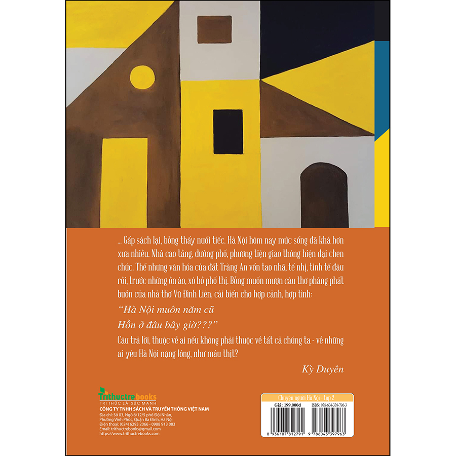 Chuyện Người Hà Nội tập 2 sẽ dẫn bạn đọc đi sâu thêm vào ngõ ngách văn hóa và đời sống sinh hoạt của một Hà Nội xưa cũ. Với nếp sống lúc chậm, lúc gian truân khốn khó, mang đặc điểm và bản sắc của một đô thị - đan cài vào cái cũ tao nhã, mang ảnh hưởng văn hóa Pháp của thời “thuộc địa” với xáo trộn ngỡ ngàng của thời bao cấp và cái bấy bớt, hỗn độn của thời bắt đầu đổi mới. Không chỉ thế, tập sách còn là tập hợp những bài viết mang tính chất khảo cứu như nguồn gốc và lịch sử của chiếc xe tay, lịch sử xây dựng cây cầu Thăng Long…
