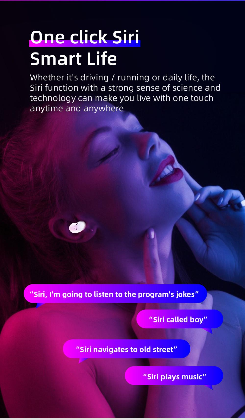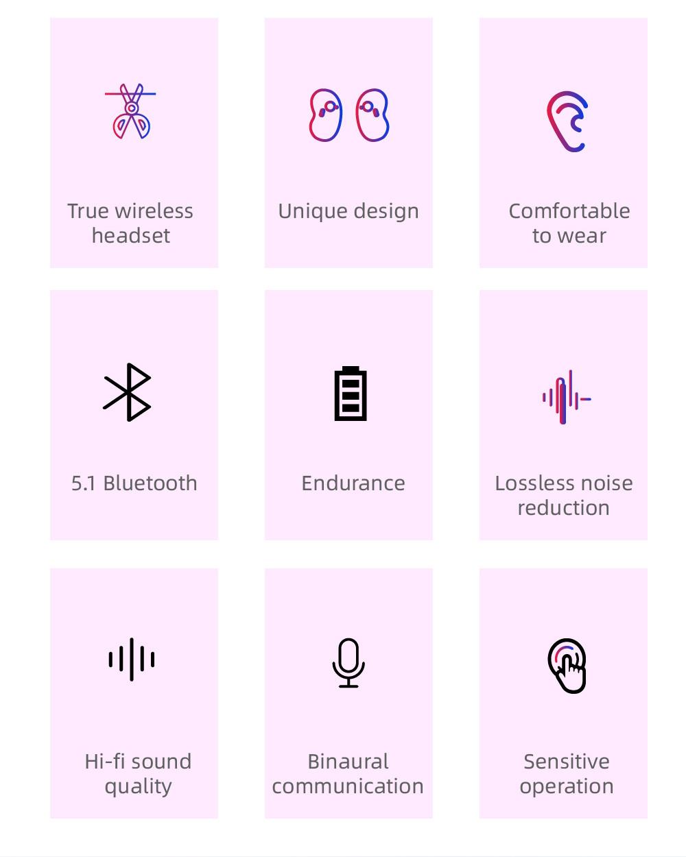Features: Adopt DSP anti-interference chip and BT5.0 chip, fast and stable transmission, low power consumption. High-quality eight-core 13mm speaker unit, good sound quality, comfortable audio experience. CVC intelligent noise reduction technology can automatically reduct environmental