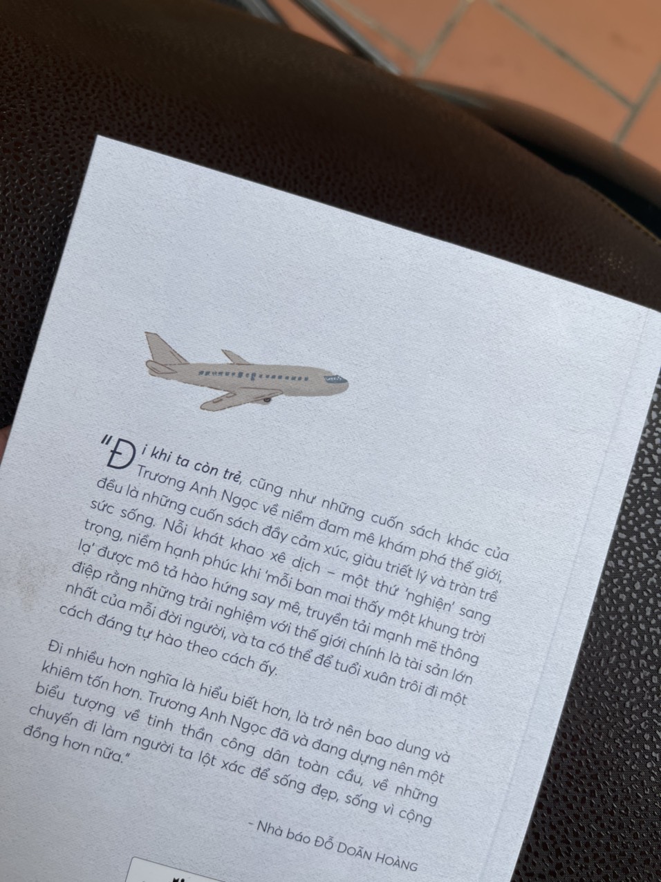 Tôi cũng luôn luôn nghĩ đi giúp ta khiêm tốn hơn, bao dung hơn, điềm đạm hơn. Và đi rồi lại muốn đi nữa. Sự kết thúc của hành trình này chính là sự mở đầu của những hành trình mới. Cứ thế mãi. Trên đường. Đi, khi ta còn rất trẻ.” Nhà báo Trương Anh Ngọc – báo Tuổi Trẻ