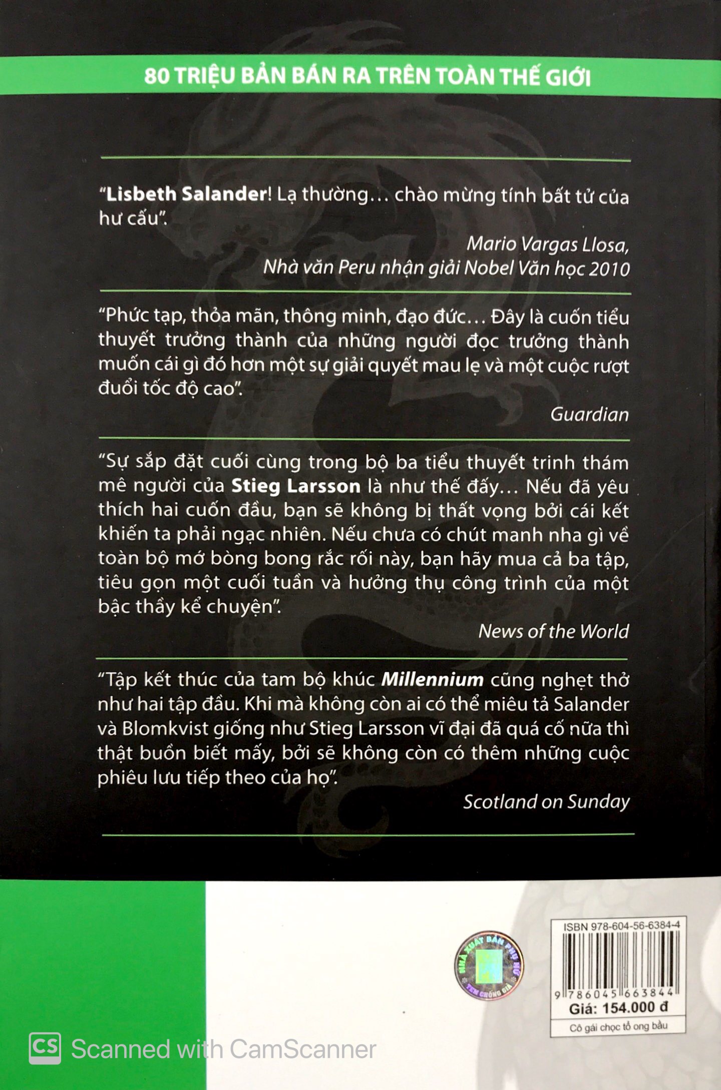 “Tập kết thúc của tam bộ khúc Millennium cũng nghẹt thở như hai tập đầu. Khi mà không còn ai có thể miêu tả Salander và Blomkvist giống như Stieg Larsson vĩ đại đã quá cố nữa thì thật buồn biết mấy, bởi sẽ không còn có thêm những cuộc phiêu lưu tiếp theo của họ.” (Scotland on Sunday)
