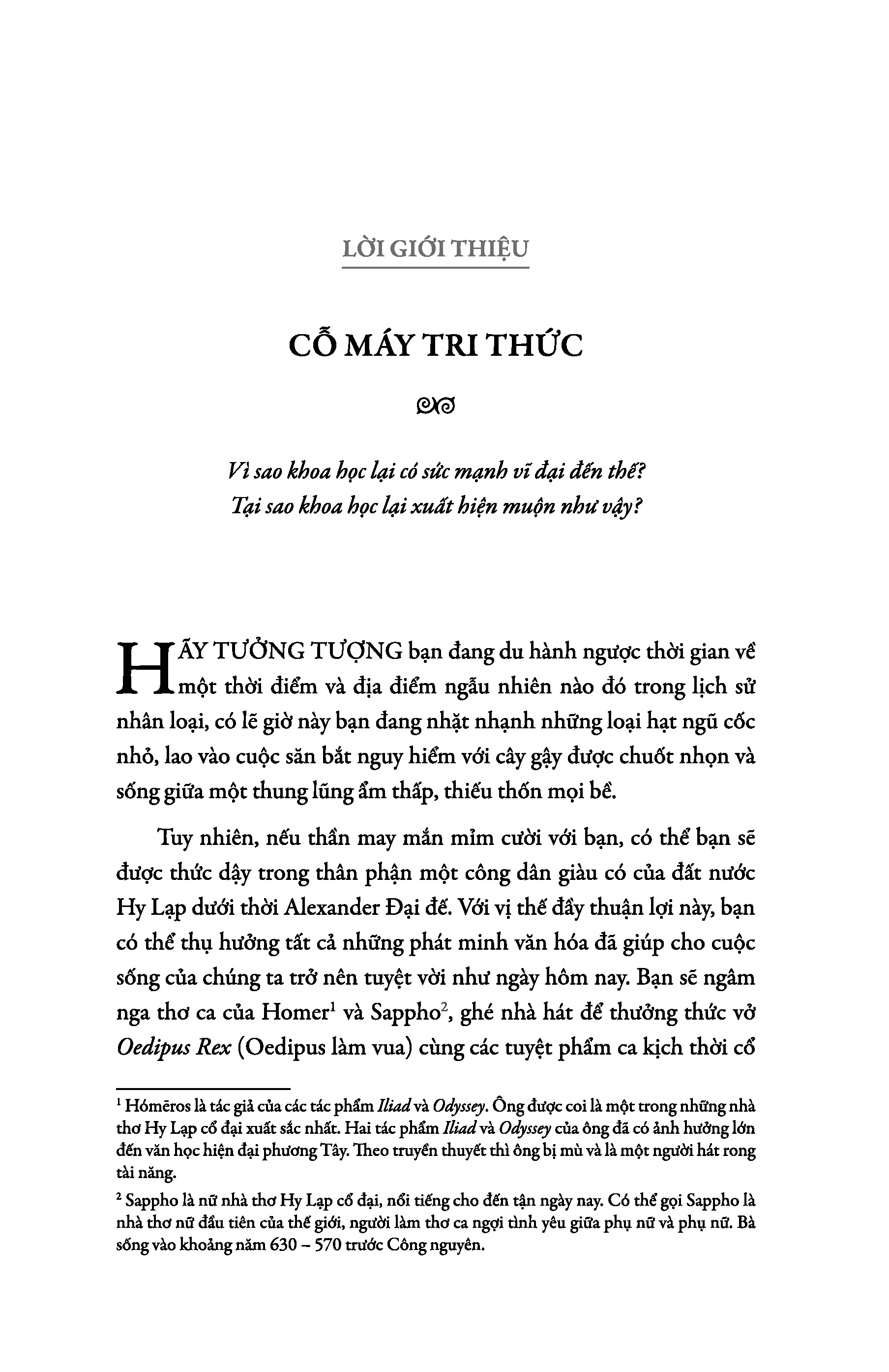Cuốn sách bạn đang cầm trên tay sẽ kể lại câu chuyện về lịch sử khoa học một cách đầy đủ hơn, dẫn dắt bạn khám phá lại các vùng đất và con người vĩ đại, trong một hành trình đầy mê hoặc xuyên suốt một thiên niên kỷ, khảo cứu nguồn gốc văn bẳn thiên văn học y học toán học cổ đồ sộ, cách thức tri thức cổ đại được bảo tồn và truyền bá từ thế giới Hy Lạp-La Mã đến thời kỳ Phục Hưng ở châu Âu. Ta sẽ theo chân Euclid, Galen và Ptolemy từ Alexandria thé kỷ thứ 6 đến Baghdad thế kỷ thứ 9, từ Cordoba Hồi giáo đến Toledo Kito giáo, từ trường y của Salerno đến Palermo, thủ phủ của sự pha trộn văn hóa sôi động của Sicily, và cuối cùng đến Venice, nơi các máy in của thành ơhoos thương mại lớn này sẽ giúp hình học của Euclid, hệ thống các vì sao của Prolemy và khối lượng lớn các tác phẩm về y học của Galen được truyền bá rộng rãi hơn nữa. Khi lần theo những sợi chỉ đỏ tri thức mong manh ấy từ thế kỷ này sang thế kỷ khác, từ đông sang tây và từ bắc xuống nam, một bản đồ tri thức mới sẽ mở ra mạng lưới két nối giữa thế giới Hồi giáo và Kito giáo, những kết nối đã góp phần bảo tồn và chuyển đổi thiên văn học, toán học và y học từ đầu thời Trung đại đến thời Phục hung. Ta sẽ thấy di sản tri thức của nhân loại vĩ đại đến mức nào nhờ những đóng góp thầm lặng của biết bao người. Bản đồ tri thức không đơn thuần chỉ là một cuốn sách về lịch sử tri thức, các vùng đất và con người, mà còn là một lời nhắc nhở về tầm quan trọng của việc bảo tồn và chia sẻ kiên thức qua các thế hệ và nền văn hóa.