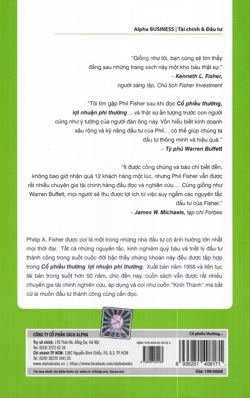 Đáp ứng nhu cầu ngày càng tăng trong việc tìm hiểu về cổ phần, cổ phiếu, chứng khoán, chiến lược đầu tư của độc giả, Alpha Books chọn mua bản quyền dịch và xuất bản