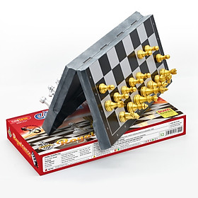 Với chất liệu nhựa ABS an toàn, bàn cờ được thiết kế trơn nhẵn, không góc cạnh, quân cờ được phủ lớp nhũ vàng, bạc bắt mắt, các quân cờ và bàn cờ được tráng một lớp từ tính (nam châm), để giúp khi chơi không bị đổ.