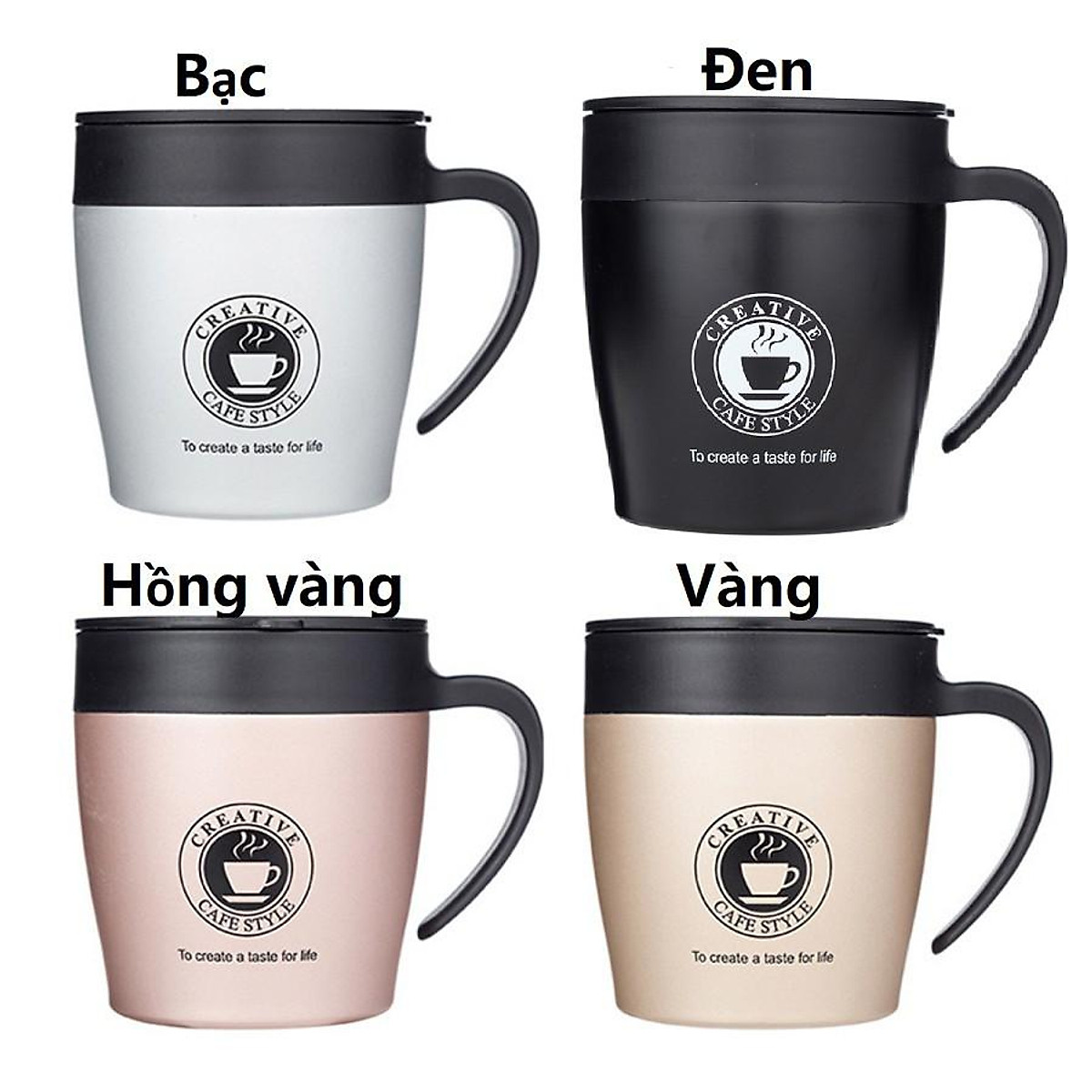 Cốc Cafe Giữ Nhiệt 330ml Chất Liệu Inox 304 Có Tay Cầm Tặng Kèm Thìa - Shop Gold ***Đặc điểm nổi bật: - Chất liệu : inox 304 - Màu sắc: Hồng, Trắng, Đen -