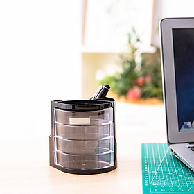 ️Chất liệu nhựa trong dễ dàng nhìn thấy 4 ngăn kéo xoay 2 ống cắm 1 ngăn đựng giấy nhắn