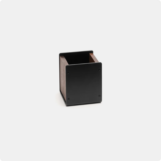 THÔNG SỐ KỸ THUẬT - Kích thước: 75 x 75 x 90 mm - Màu sắc: Đen + màu gỗ óc chó - Chất liệu: Gỗ óc chó + nhôm - Thiết kế ống chuyên dụng đựng bút, kéo, thước,... - Bề mặt tiếp xúc đồ dùng lót vải nhung chống xước xát - Đồng bộ cùng các sản phẩm Premium Collection, làm đẹp không gian