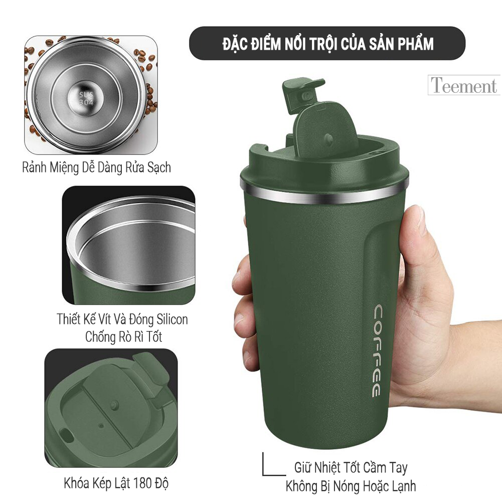 Cốc Giữ Nhiệt Coffeeholic Teement Inox 304 Dung Tích 510ml Cao Cấp Kiểu Dáng Hàn Quốc Cầm Tay Sang Trọng- Hàng Chính Hãng