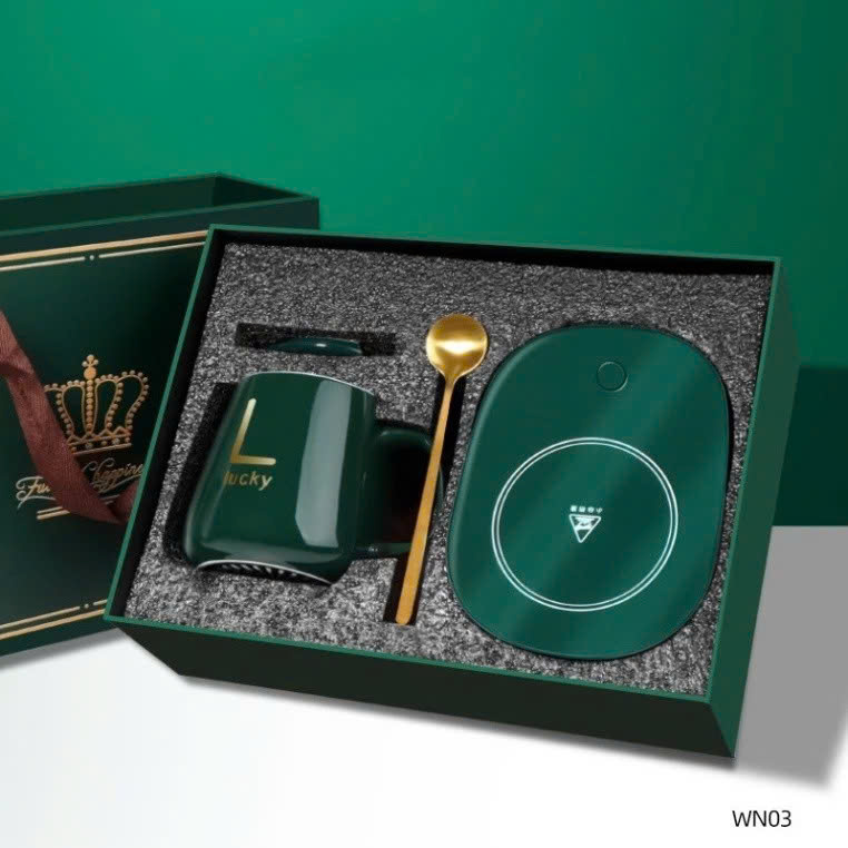 ✨Cốc Hâm Nóng Đa Năng – Bộ Ly Sứ Kèm Đế Điện Giữ Nhiệt Trà, Cafe, Sữa | Kèm Thìa & Hộp Sang Trọng