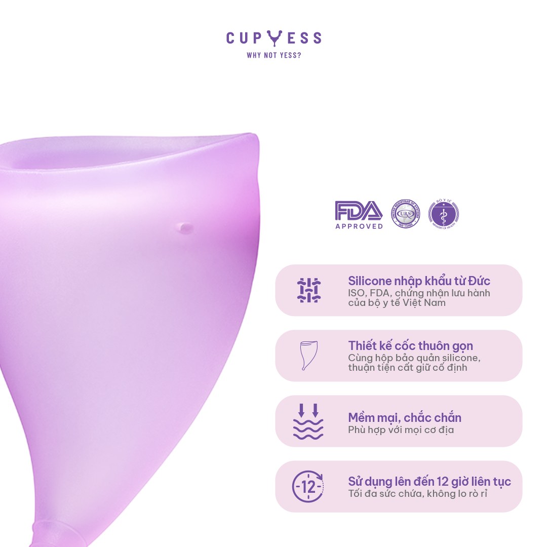 ✨Cốc nguyệt san tiêu chuẩn S Cup cỡ S (30ml) Cup Yess chính hãng, an toàn, phù hợp mọi cơ địa