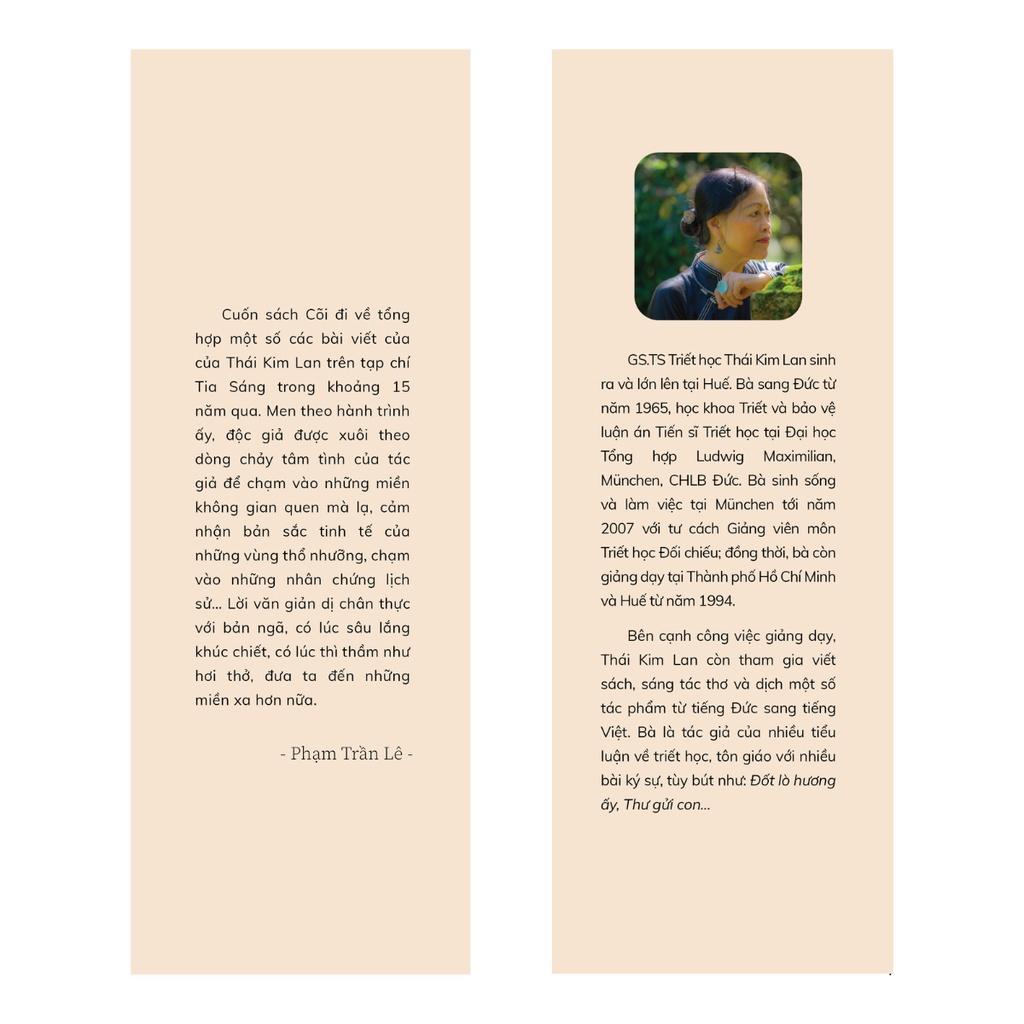 Cõi đi về gồm tập hợp các bài viết của Triết học Thái Kim Lan, một người con xứ Huế có thời gian dài học tập và làm việc tại Đức. Cuốn sách được chia làm 5 phần chính. Phần 1: Những câu chuyện văn hóa; Phần 2: Tác giả và tác phẩm; Phần 3: Thiên nhiên và con người; Phần 4: Cuộc hành đạo nếp sống Huế, Phần 5: Phụ lục (bài viết bình luận và hình ảnh minh họa)