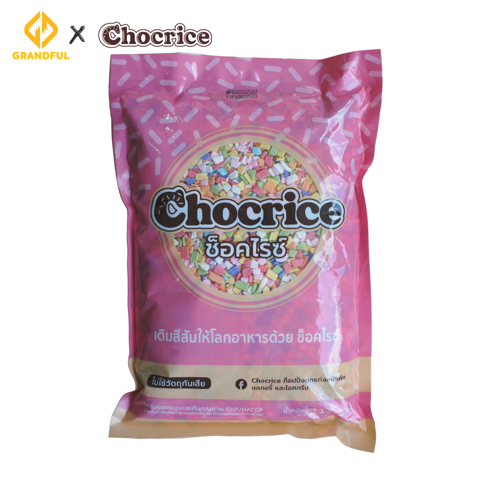 Cốm Màu Chocrice Cốm màu trang trí thực phẩm thương hiệu Chocrice của Thái Lan. Đặc biệt có 4 loại - Cốm hình gạo - Cốm hình vuông - Cốm hình đá - Cốm bi Với
