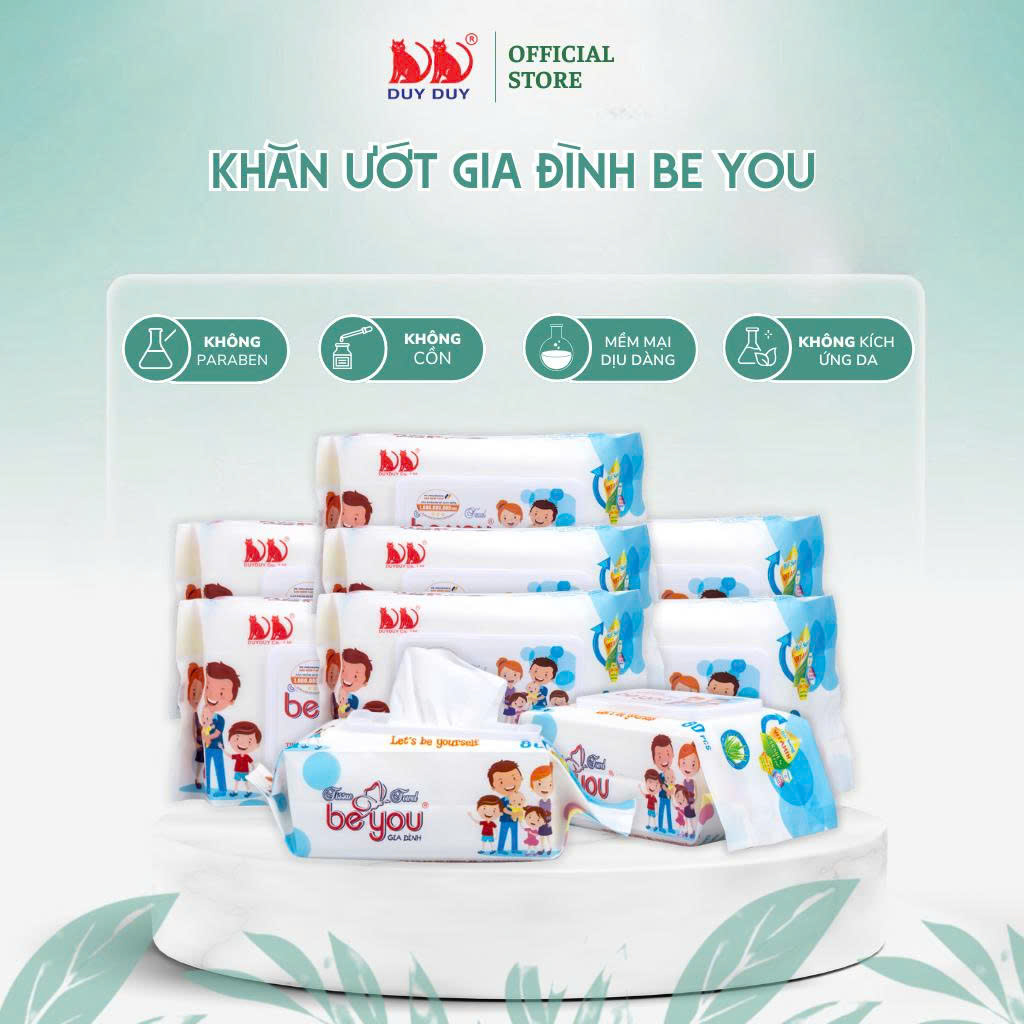 Combo Khăn ướt đa năng Be You vải không dệt rayon loại 1 80 miếng (13.5x20cm) không hóa chất Khăn ướt đa năng Baby Be you Gia đình 80 tờ được làm từ vải không