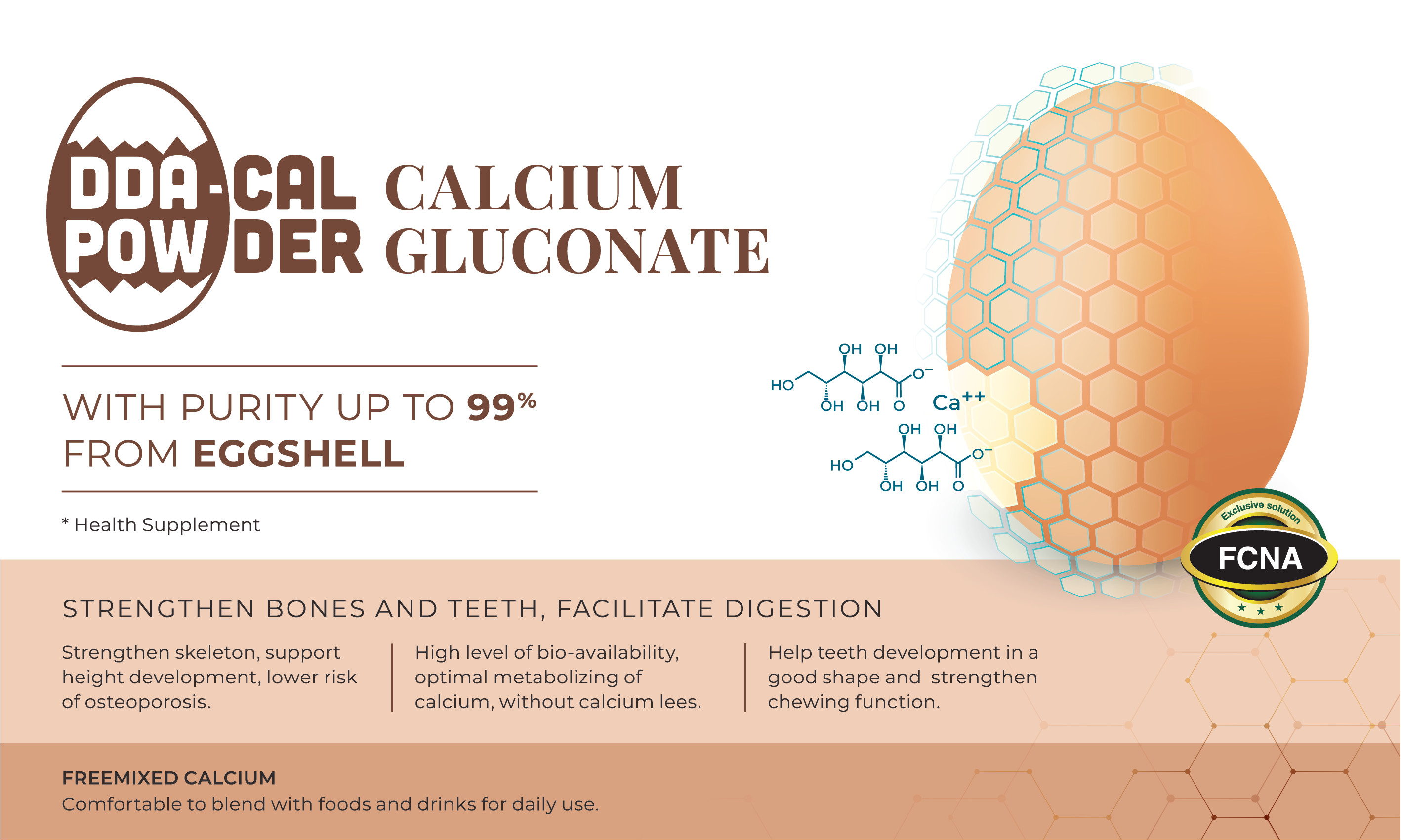 Thực phẩm chức năng canxi hữu cơ DDA chiết xuất từ vỏ trứng gà tinh khiết 99.9% dạng bột hoà tan nhanh, hỗ trợ giúp hệ xương chắc khoẻ, giảm loãng xương, còi xương, tăng chiều