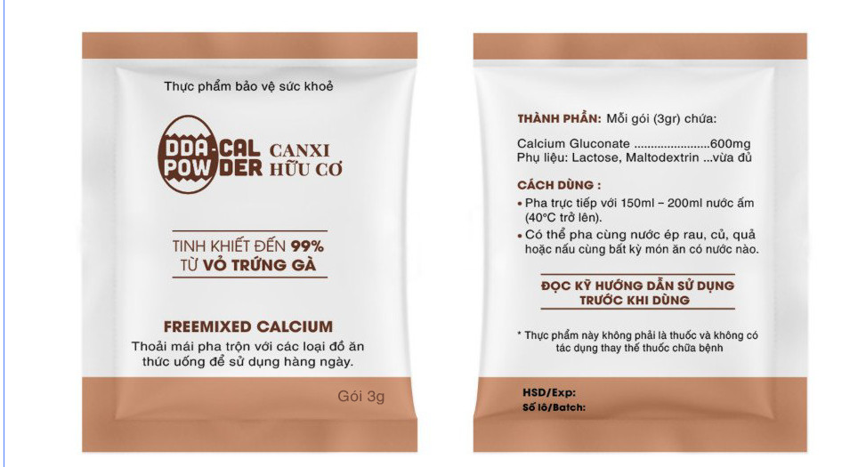 Thực phẩm chức năng canxi hữu cơ DDA chiết xuất từ vỏ trứng gà tinh khiết 99.9% dạng bột hoà tan nhanh, hỗ trợ giúp hệ xương chắc khoẻ, giảm loãng xương, còi xương, tăng chiều cao và các bệnh lý thiếu canxi, hỗ trợ mọc răng sớm, cho răng chắc & đều đẹp, tăng cường chức năng ăn nhai. Với nguồn canxi hữu cơ gốc gluconate thân thiện với hệ tiêu hoá, hấp thu tối đa lượng canxi, sản phẩm bảo vệ và hỗ trợ tối ưu cho quá trình tăng trưởng thể chất của bé và gia đình. Sản phẩm thích hợp cho bé từ 1 tuổi trở lên đến người lớn tuổi.