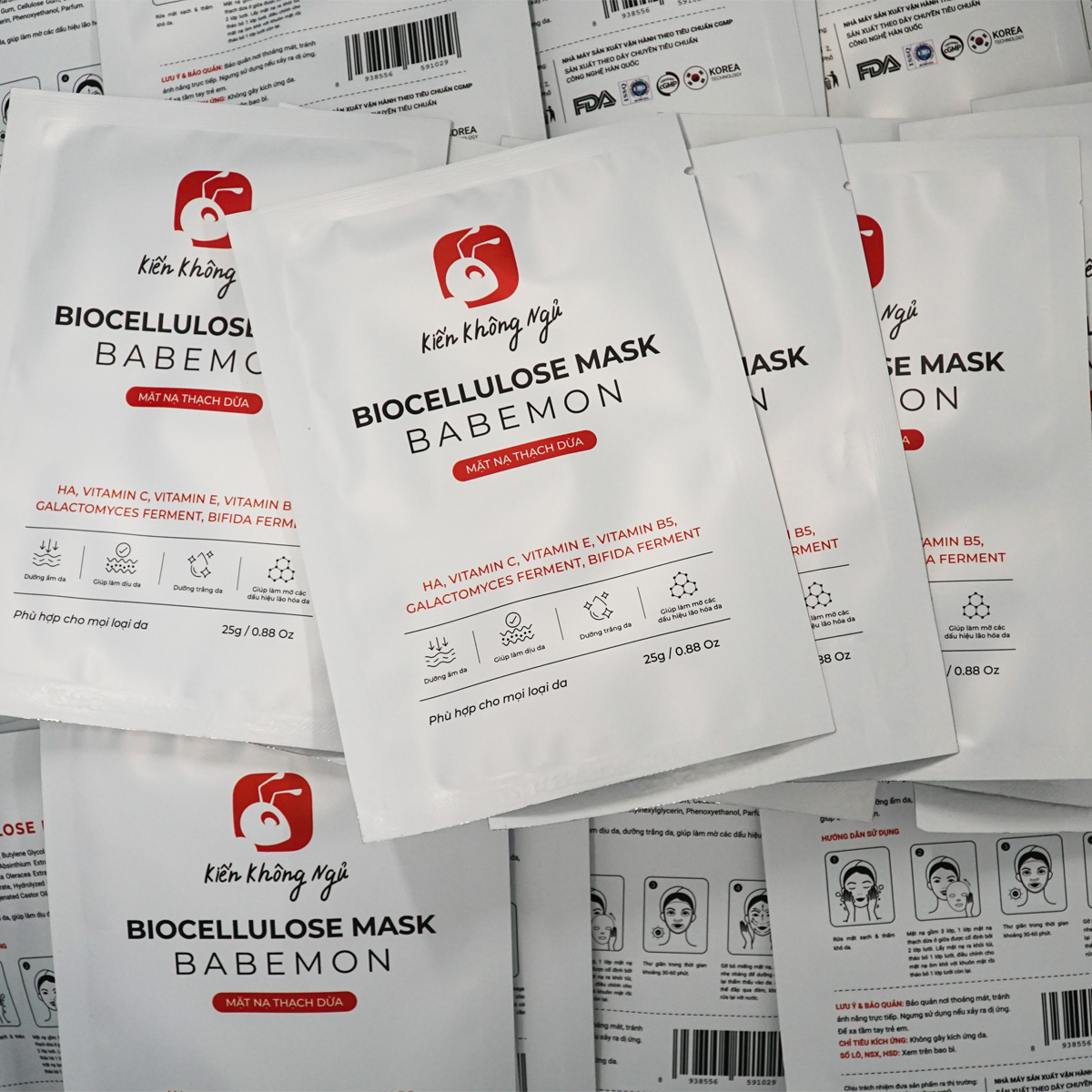 Mua tại TiktokCombo 10 miếng Mặt nạ sinh học dừa tươi lên men – Mặt nạ thạch dừa Biocellulose Mask Babemon Mặt nạ sinh học dừa tươi lên men cao cấp – Mặt nạ thạch dừa Biocellulose Mask Babemon của Kiến Không Ngủ dưỡng da trắng sáng, làm mờ các dấu hiệu lão hóa da, cấp ẩm, hỗ trợ phục hồi và trẻ hóa làn da, giúp làn da căng mịn, sáng khỏe. Sở hữu công thức đặc biệt được nghiên cứu kỹ lưỡng bởi các chuyên gia R&D của Việt Nam và Hàn Quốc, phù hợp với đặc trưng của làn da phụ nữ Việt Nam, mặt nạ thạch dừa Biocellulose Mask Babemon giúp làm dịu da, hỗ trợ làm đều màu da, cung cấp đủ độ ẩm cho da, giúp da săn chắc, mịn màng hơn. Sau mỗi lần sử dụng, bạn sẽ cảm nhận ngay sự tươi mới, mịn màng và sức sống trên làn da của mình. CÔNG DỤNG