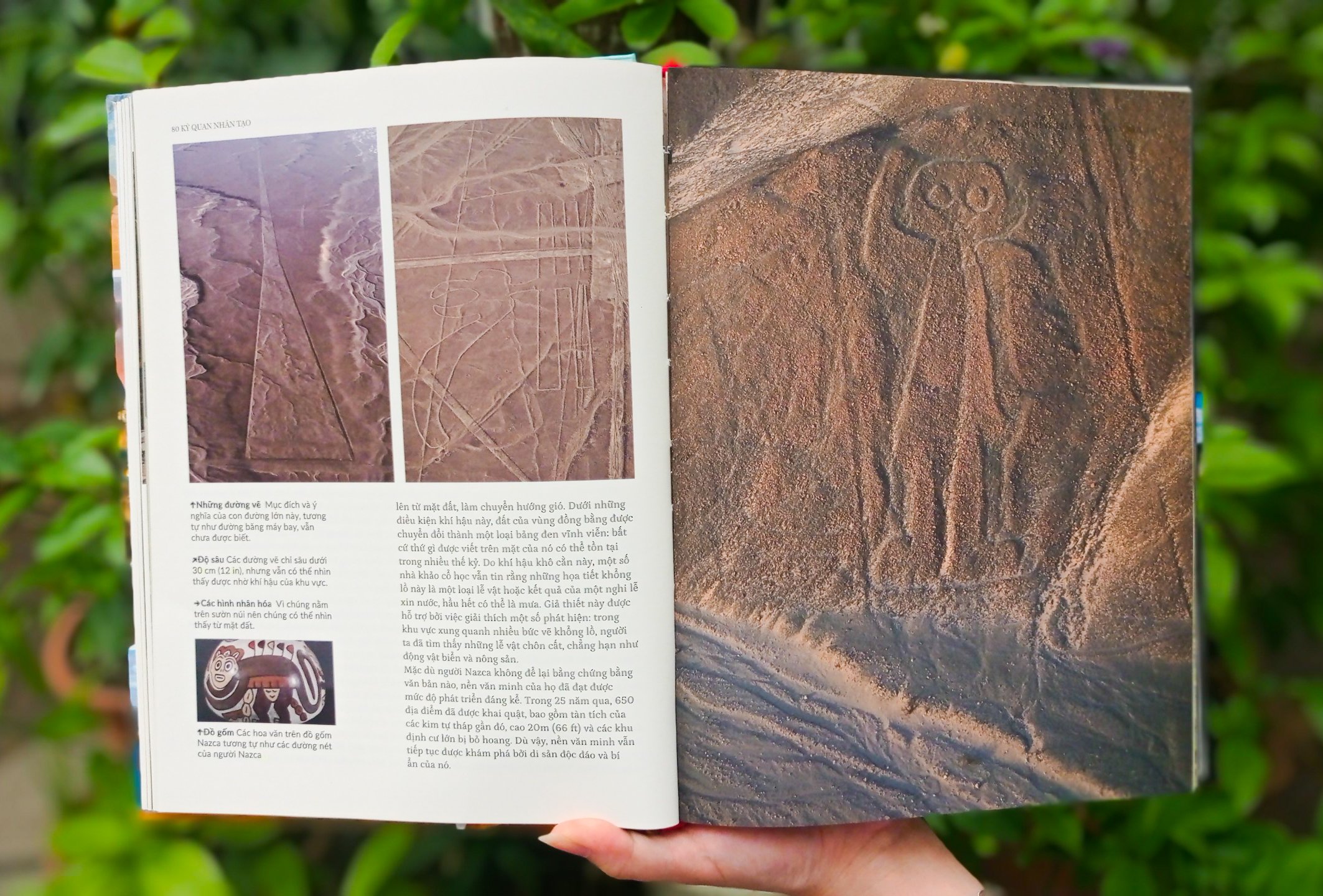 • Cuốn sách được trình bày khoa học với những chú giải tỉ mỉ, chính xác sẽ dẫn dắt chúng ta qua từng lục địa trên Trái đất (Á – Phi – Mỹ - Âu – Úc – Đại dương) và khám phá đến tận cùng những kỳ quan kỳ vĩ.