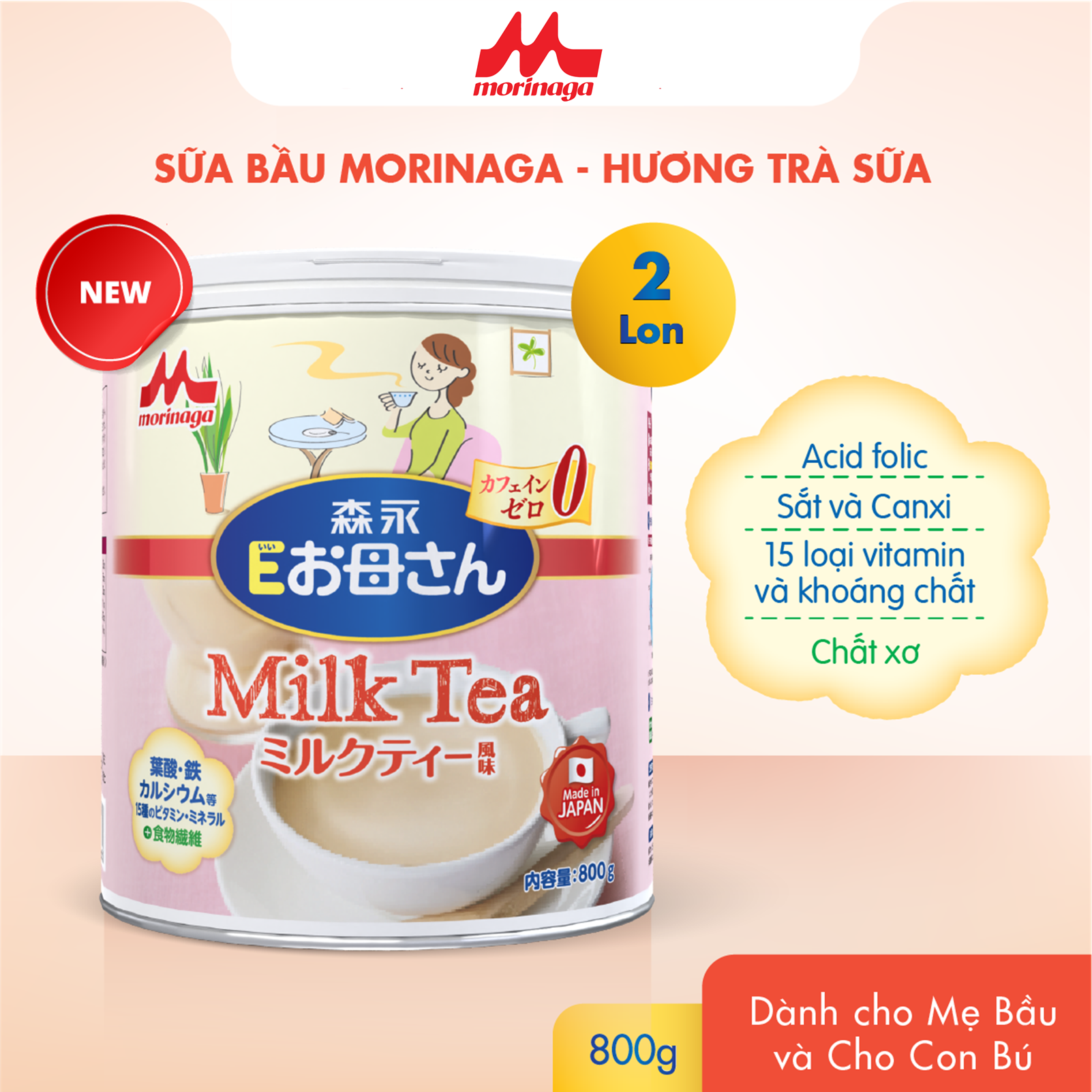 Mua tại TiktokCombo 2 lon Sữa Bầu Morinaga E-Okasan Hương Trà Sữa 800g