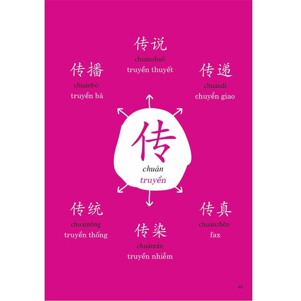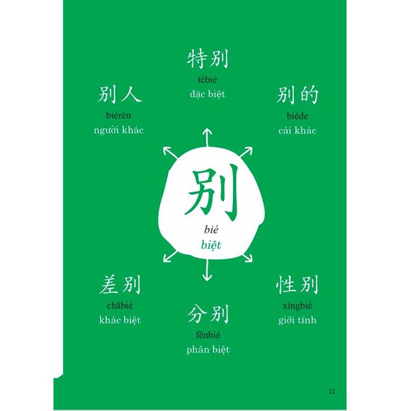 Học từ vựng mà học kiểu lan man thì khó nhớ lắm ấy, nhưng sách trình bày cực kỳ khoa học và logic nhé, một từ đơn tiếng Trung sẽ tạo ra các từ ghép, các bạn học 1 từ đơn đó, chỉ cần thêm 6 từ đơn khác sẽ ra 6 từ ghép với các nghĩa hoàn toàn khác nhau.