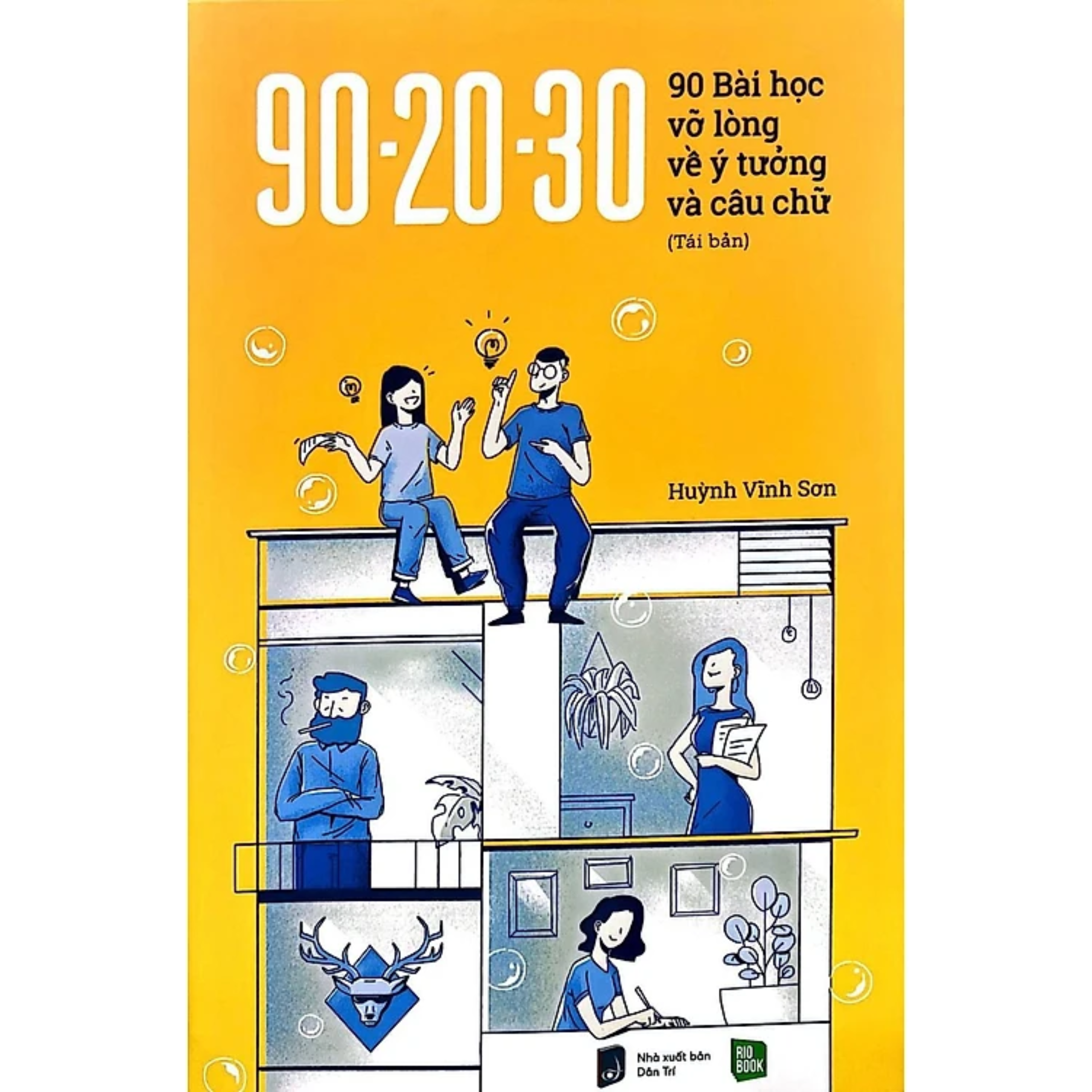 - 90-20-30 90 Bài Học Vỡ Lòng Về Ý Tưởng Và Câu Chữ (Bản Đen Trắng) Mời bạn đến với hành trình 90 ngày – tương đương 3 tháng thực tập của cô nàng Copywriter vừa tròn 20, dưới trướng một lão Senior Copywriter vừa chấm 30. 20 vừa bước chân ra khỏi giảng đường đại học, bắt đầu đối mặt với những thử thách thực sự. 30 vừa bước sang năm hành nghề thứ 9, bắt đầu đối mặt với áp lực dẫn dắt đàn em. Hai con người xa ơi là xa nhưng gặp nhau nơi niềm vui sáng tạo, chiến đấu cùng nhau tại một Agency quảng cáo. Mỗi ngày 20 và 30 lại “quần nhau” và mang về những bài học của riêng mình. 20 thì cặm cụi gõ lên trên blog, 30 thì hí hoáy viết từng trang. Còn bạn thì ung dung cầm trọn những dòng tâm tư ấy trên tay.