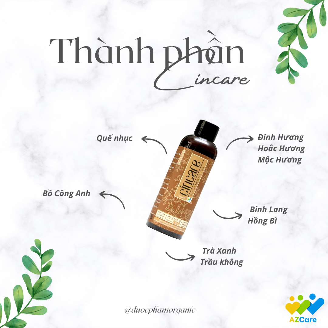 NƯỚC SÚC MIỆNG THẢO DƯỢC CINCARE: NƯỚC HOA CHO MIỆNG - LÁ CHẮN CHO RĂNG Với thành phần hoàn toàn từ thiên nhiên không chứa chất tạo màu, không cồn, không paraben, Nước súc miệng Thảo dược Cincare an toàn tuyệt đối với người sử dụng kể cả trẻ nhỏ, phụ nữ mang bầu hoặc đang cho con bú. Hàng nghìn khách hàng mắc các bệnh lý về răng miệng đã sử dụng liệu trình 3-5 chai Nước súc miệng thảo dược Cincare và nhận thấy hiệu quả trên cả mong đợi: Khử sạch mùi hôi ngay sau lần sử dụng đầu tiên. 5 tới 7 ngày đầu: Biểu hiện sưng lợi (nướu), chảy máu chân răng giảm đáng kể. Bớt viêm nhiễm lợi, không còn đau buốt thường xuyên. Sau 2 tuần: Mùi khó chịu dai dẳng hết hẳn, chảy máu chân răng không còn, hơi thở thơm tho, lợi khỏe, bám chắc vào răng. Sau 3 tuần: Các nhiễm khuẩn răng miệng hết hẳn, không có dấu hiệu tái phát, nướu răng ngày càng khỏe mạnh. 4 tuần tới 3 tháng: Hơi thở luôn thơm mát, nướu lợi hồng hào, không tái phát sưng viêm. Hướng dẫn sử dụng: Ngày dùng 2 lần, sáng sau khi ngủ dậy và tối trước khi đi ngủ.  Súc miệng khoảng 10ml, ngậm từ 30 giây đến 1 phút rồi nhổ ra.  Có thể pha loãng gấp đôi với nước sạch để súc miệng (Lưu ý: dùng hết ngay sau khi pha). Không cần súc miệng lại với nước sạch.  Đối tượng phù hợp: Người bị chảy máu chân răng, bệnh lý nha chu, hôi miệng.  Viêm họng, viêm amidan, viêm niêm mạc miệng, loét vùng miệng do nhiệt.  Mụn rộp vùng miệng do Herpes Simplex Virus. Người niềng răng.  Dùng sau điều trị răng hàm mặt và nhổ răng khôn.  Phòng ngừa nhiễm khuẩn răng miệng cho bệnh nhân nằm lâu ngày, không vận động. Để rõ hơn về tình trạng cũng như giải pháp cải thiện sức khoẻ răng miệng hiện tại của mình và cả gia đình, đừng ngần ngại inbox ngay cho fanpage AZCARE để được tư vấn và thăm khám online miễn phí bởi đội ngũ thạc sĩ, bác sĩ nha khoa chính quy ĐH Y Hà Nội nhé!