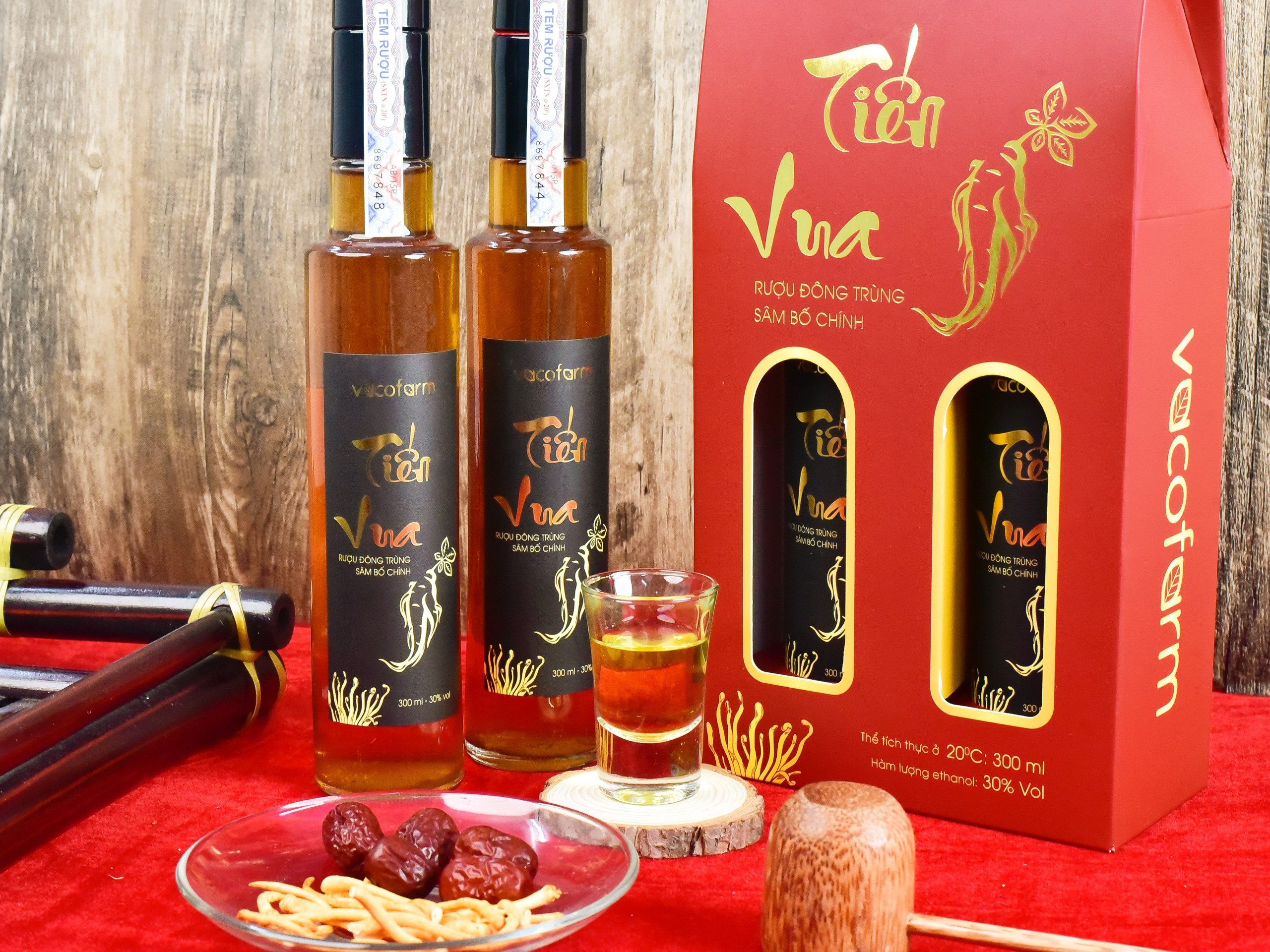 Tên sản phẩm: Tiến Vua được lọc qua thiết bị hiện đại giúp loại bỏ nhiều chất có hại như andehit, methanol, este , loại bỏ hoàn toàn cặn và giúp rượu được đầm hơn hơn có thể so sánh như được hạ thổ 5 năm. Sau khi lọc, được trực tiếp ngâm cùng Nấm Đông Trùng Hạ Thảo.