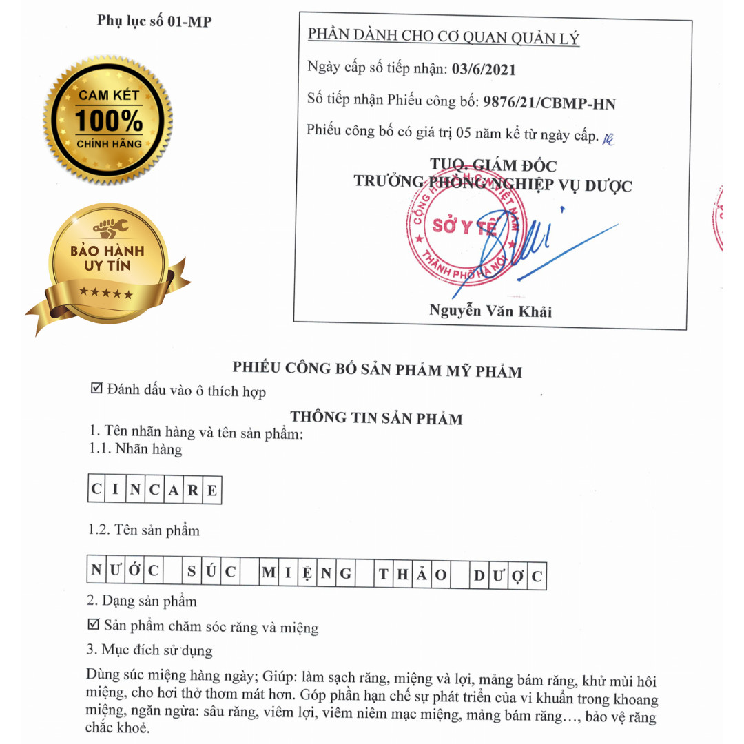 NƯỚC SÚC MIỆNG THẢO DƯỢC CINCARE: “Trợ thủ đắc lực" bảo vệ và chăm sóc răng miệng toàn diện cho cả gia đình: