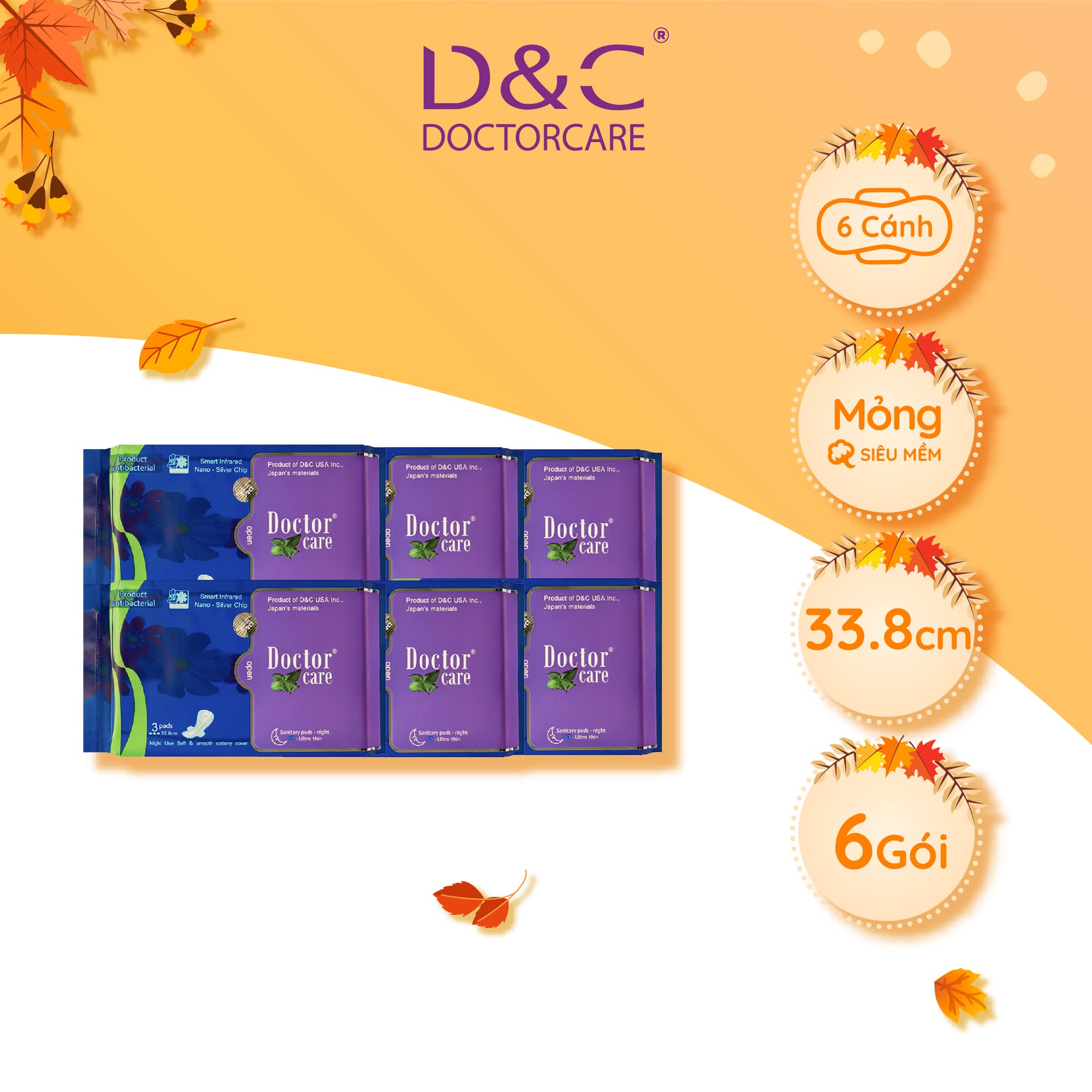 - Băng vệ sinh thảo dược Doctor Care ban đêm có cấu trúc 3D gồm 7 lớp thấm hút và kháng khuẩn nhưng vẫn giữ được kết cấu siêu mỏng, siêu nhẹ