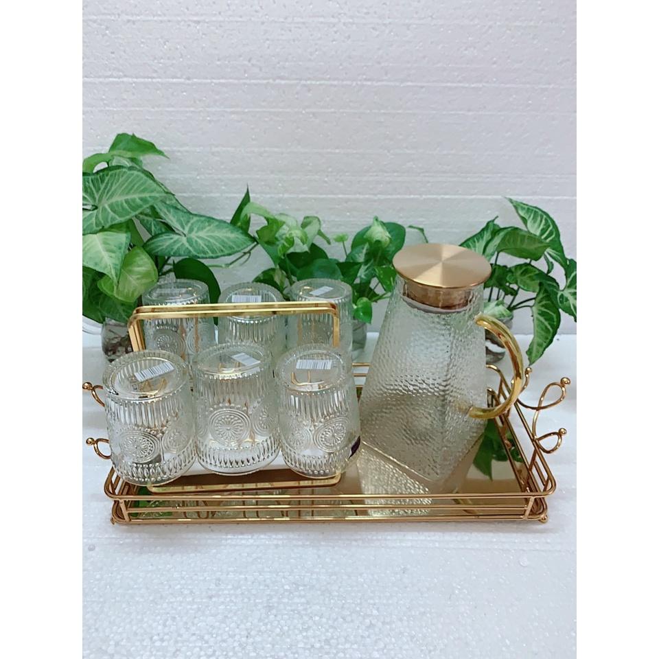 Bộ Bình Cốc Uống Nước Thuỷ Tinh Hổ Phách Cao Cấp 8 Chi Tiết Sang Trọng Độ Bên Cao M04