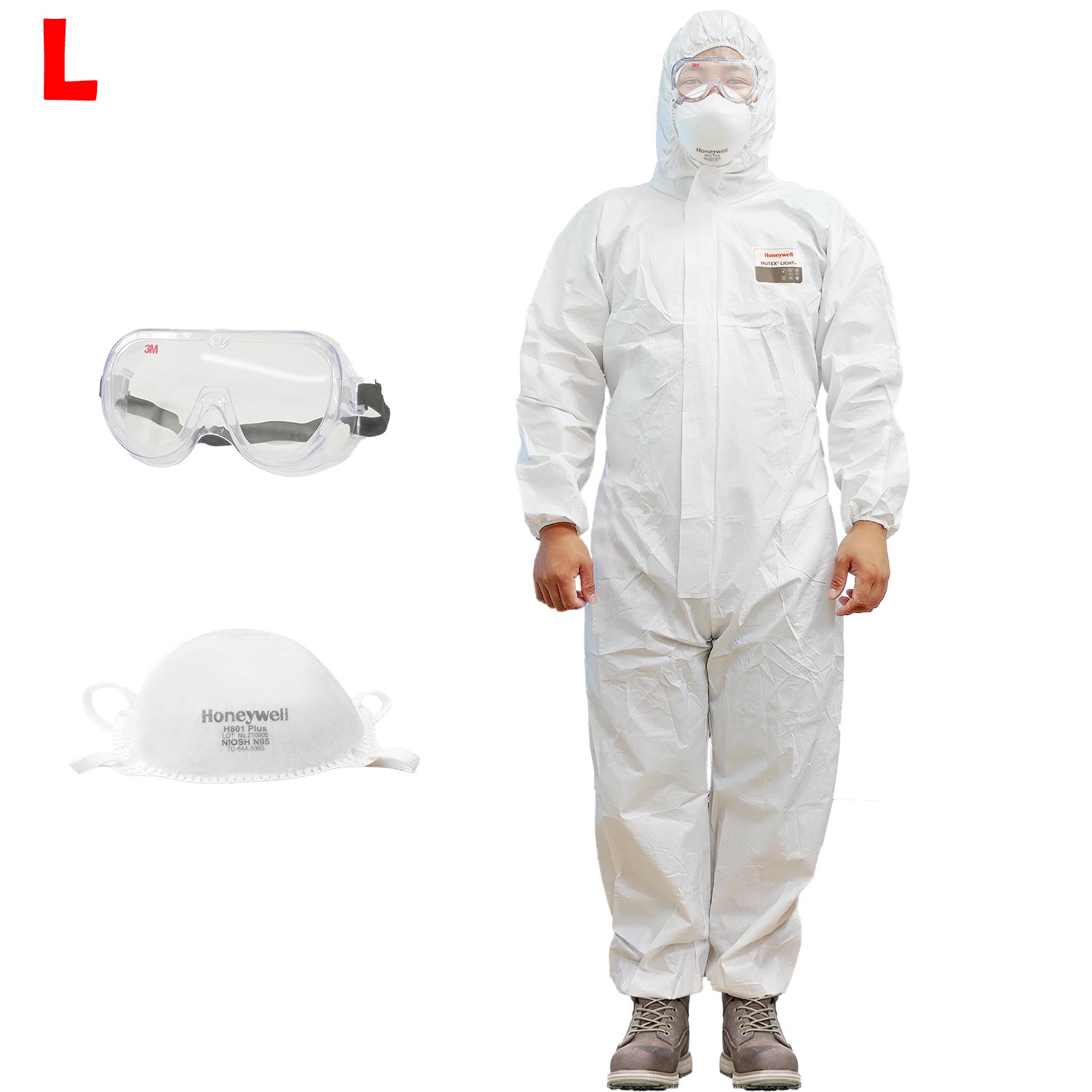 ✨Combo: Bộ quần áo Honeywell Mutex Light (Level 3) kèm Kính bảo hộ 1621 3M và Khẩu trang Honeywell H801 N95