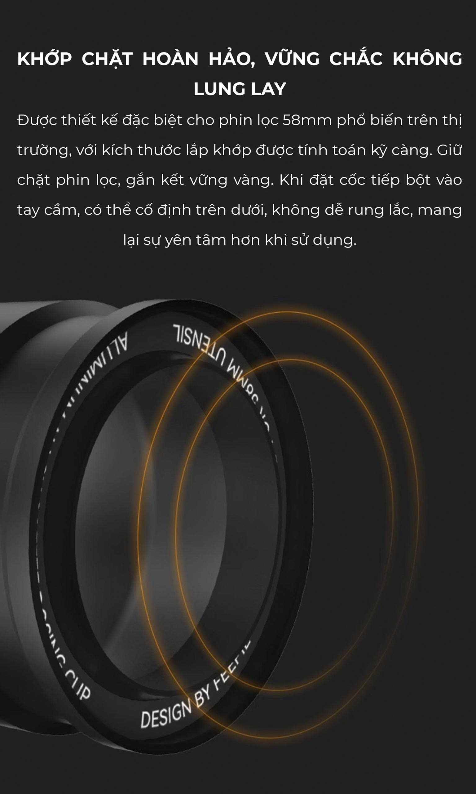 ƯU ĐIỂM NỔI BẬT: Phù hợp mọi máy pha 58mm Thiết kế chống bám bột – vệ sinh siêu nhanh Chất liệu cao cấp – chắc chắn – bền đẹp Chuẩn SCA – đạt tiêu chuẩn quán cà phê chuyên nghiệp