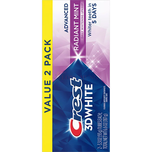 Combo kem đánh răng Crest 3D White Radiant Mint là giải pháp làm trắng răng toàn diện. Sản phẩm giúp loại bỏ vết ố vàng trên bề mặt, làm sạch sâu, ngăn ngừa sâu răng và mang lại hơi thở thơm mát, cho bạn nụ cười trắng sáng, tự tin.