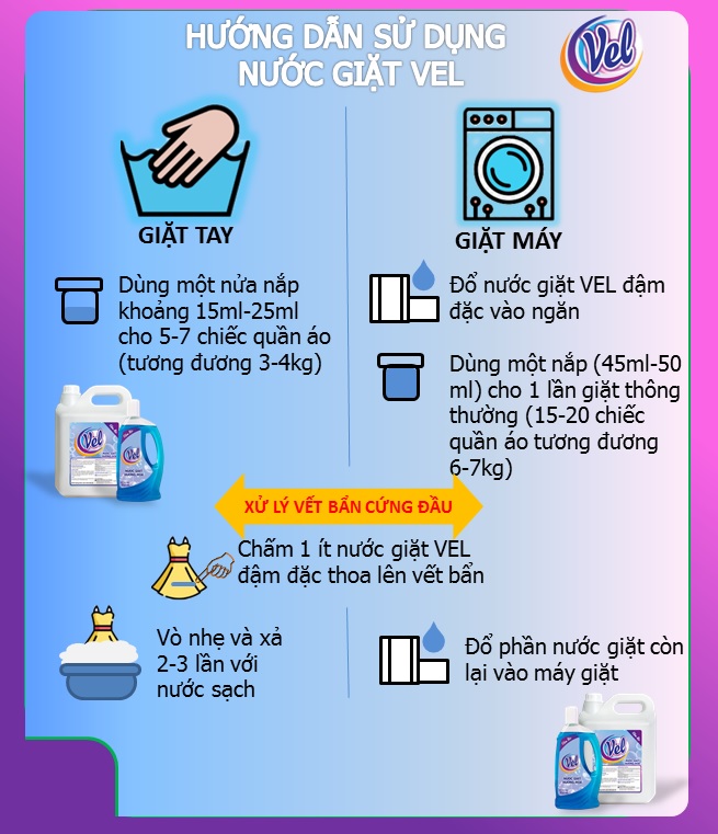 Nước Giặt Đậm đặc VEL - Hương hoa - Được sản xuất theo công nghệ Oxy hóa của Axo giúp đánh báy các vết bẩn cứng đầu trên quần áo, thảm, ghế sofa, rèm cửa,